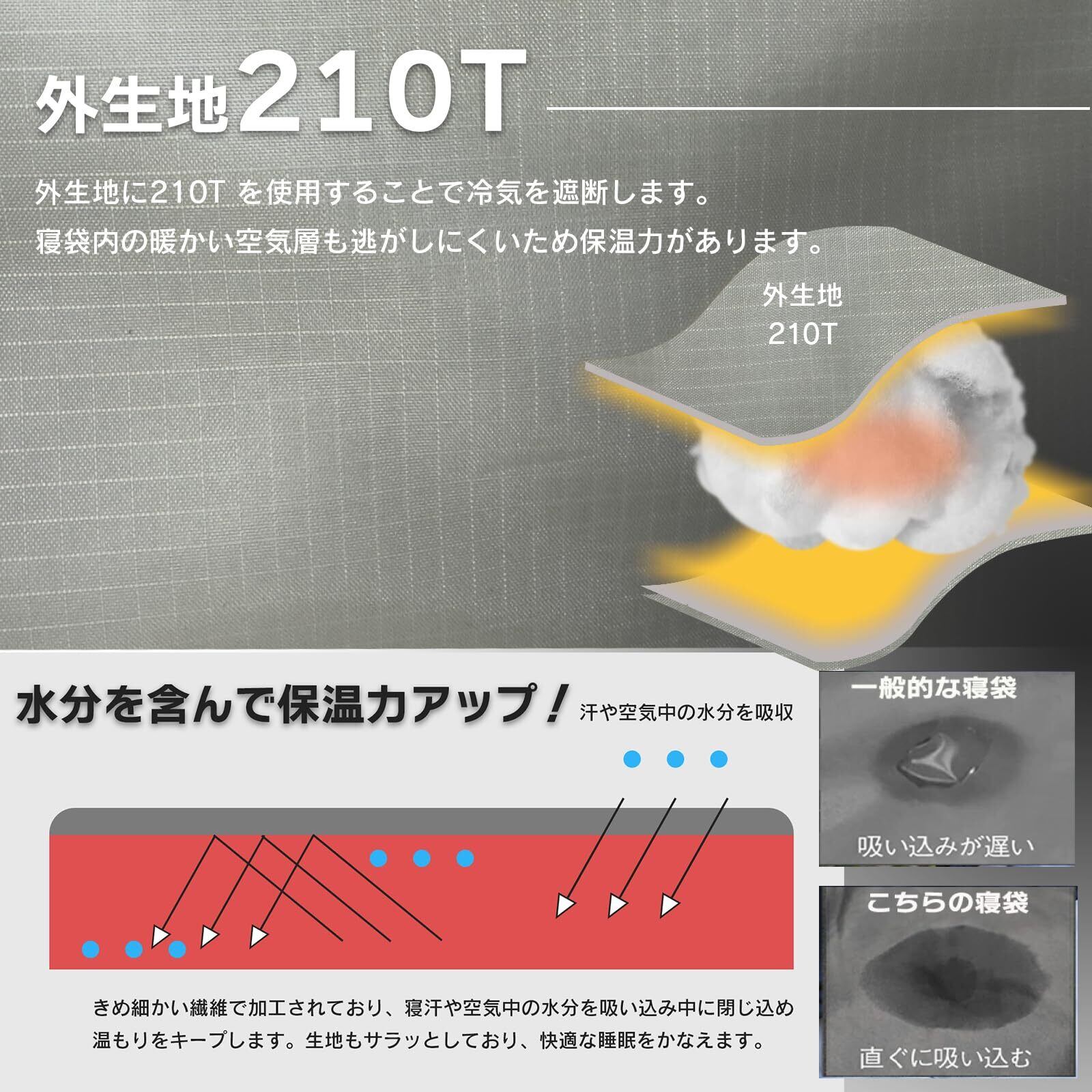 archi(アーチ) ワイドサイズ 寝袋 210T シュラフ 封筒型 抗菌仕様 車中泊 防災 最低使用温度 -15℃