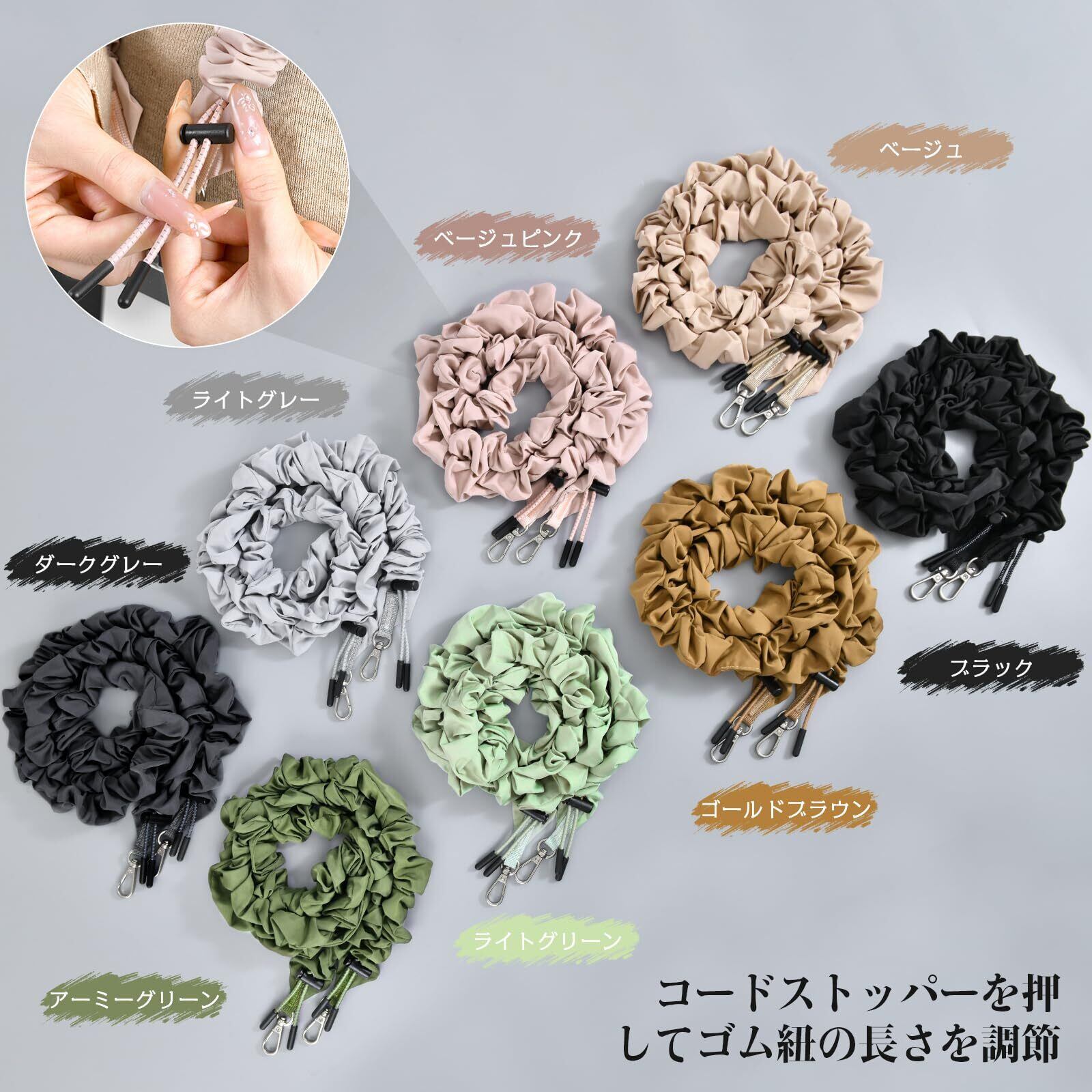 【長さ調節可能なショルダーストラップ】紐とコードストッパーで長さを調節できます。 長さは最大130cmなので、自分に合う長さでお使いいただけます。コードストッパーで調節した長さをしっかり固定できます。