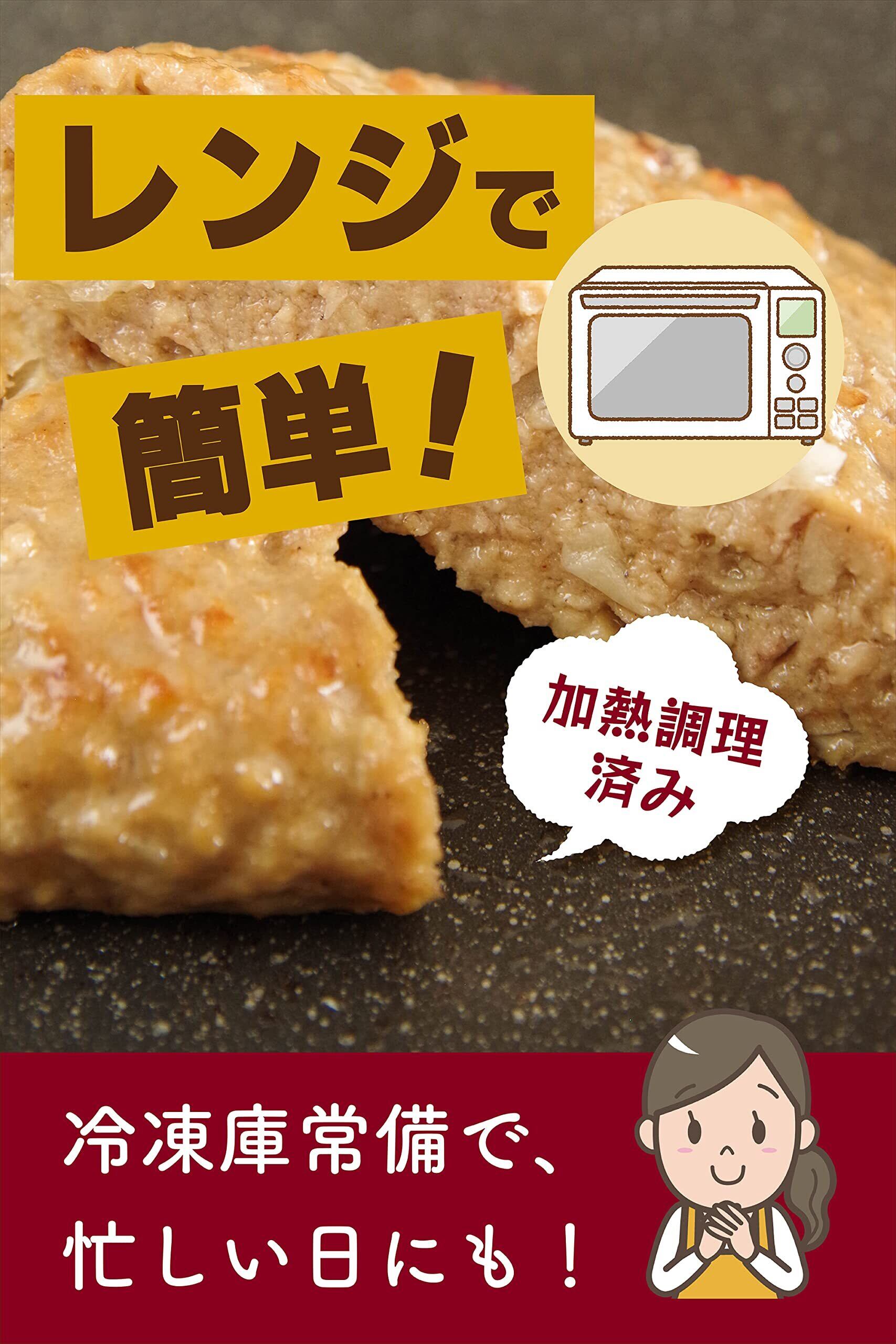 【レンジで”チン”するだけの簡単調理】一度調理済み(加熱済み)のハンバーグを冷凍でお届けいたします。加熱済みなのでレトルト食品の様に電子レンジで”チン”するだけで簡単に調理が可能な冷凍食品です!チンするだけでふっくら柔らかく仕上がるので、お仕事が忙しい方や小さなお子様がいるご家庭からご好評いただいています。