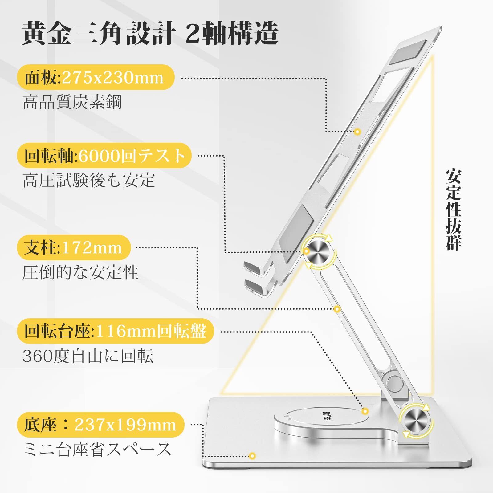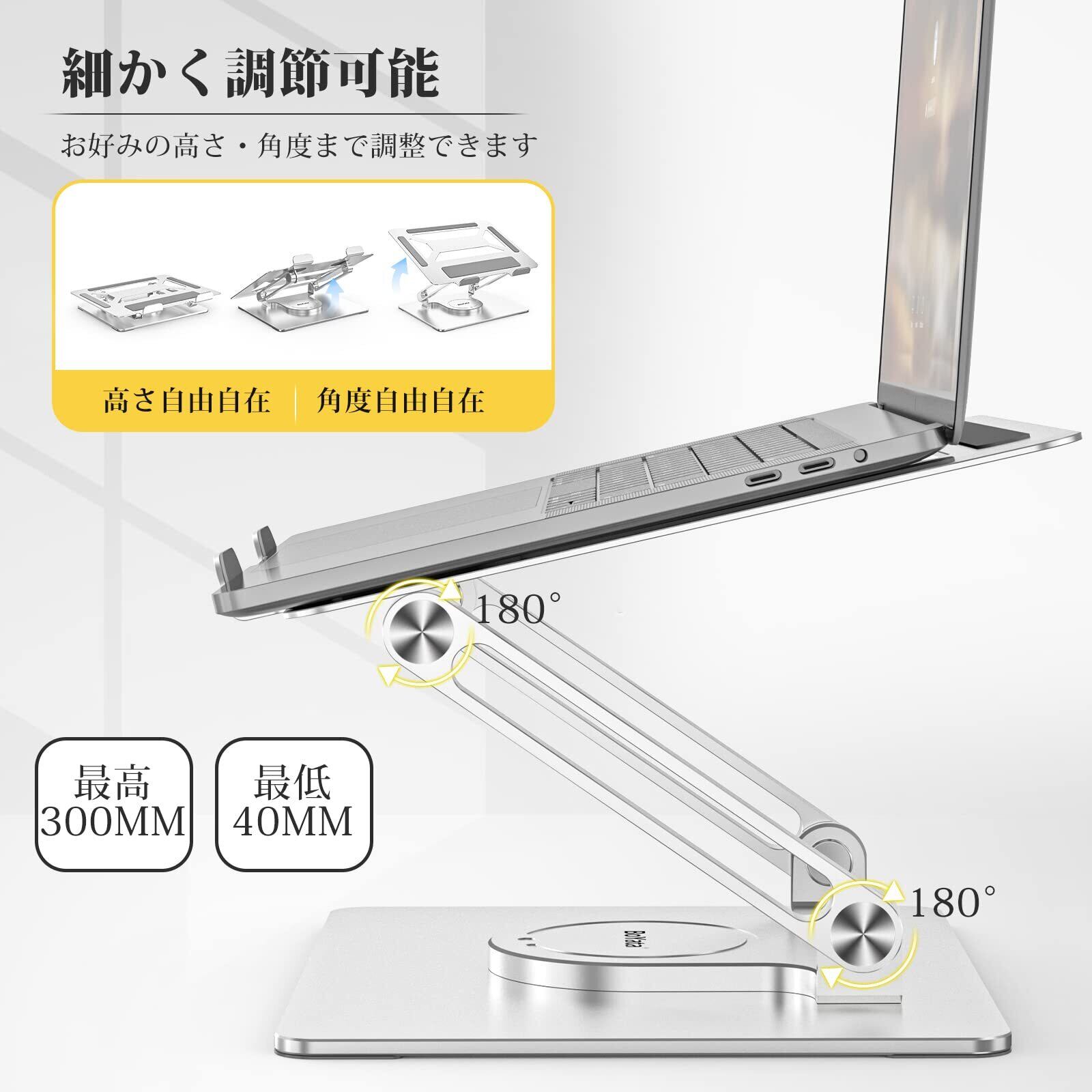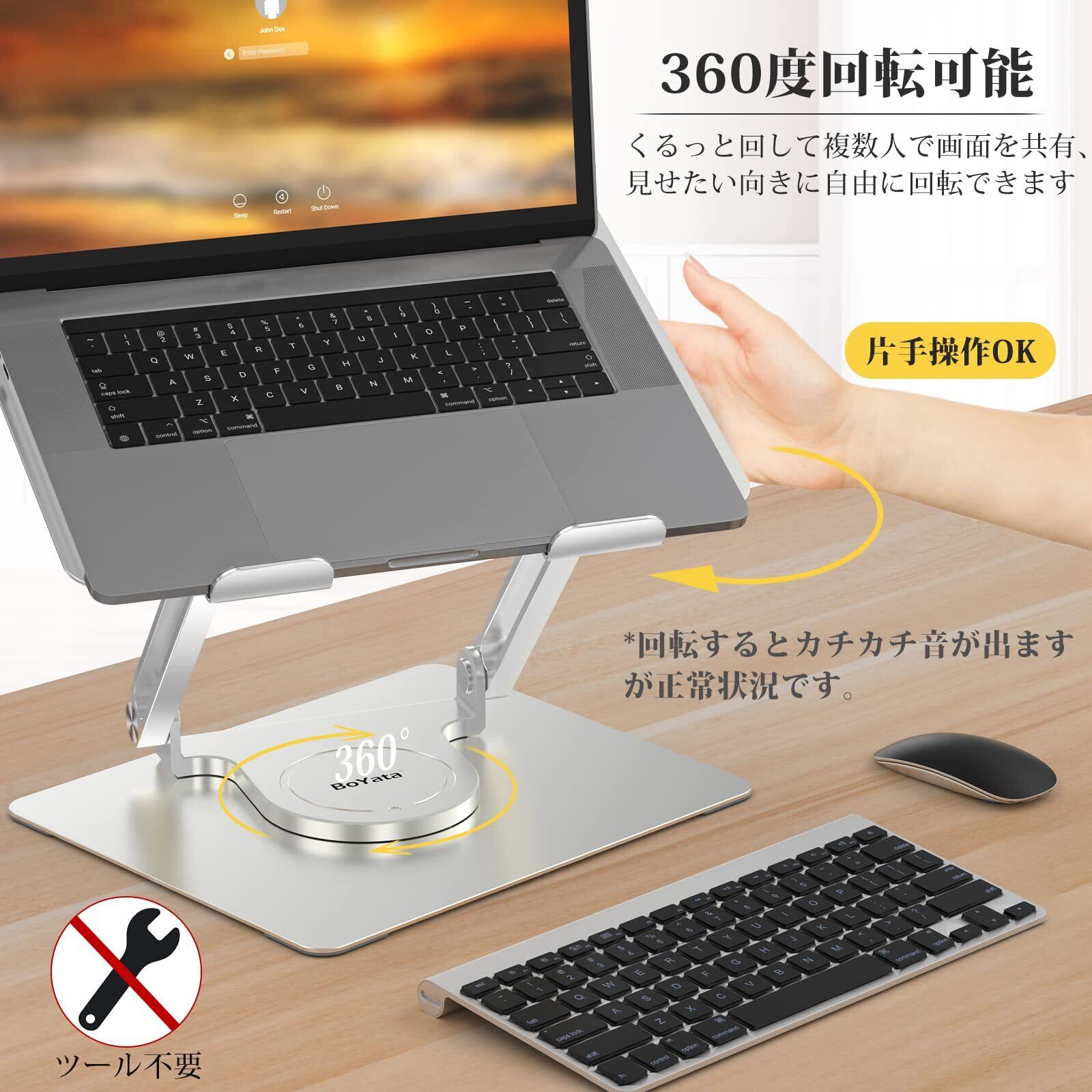 BoYata ノートパソコンスタンド 360回転式 PCスタンド タブレット 教卓スタンド 角度/高さ無段階調節 人間工学設計 放熱対策 滑り止め 姿勢改善 腰痛/猫背解消 17インチまでのノートPCやタブレットに対応 プレゼン テレワーク 在宅ワーク (シルバー)