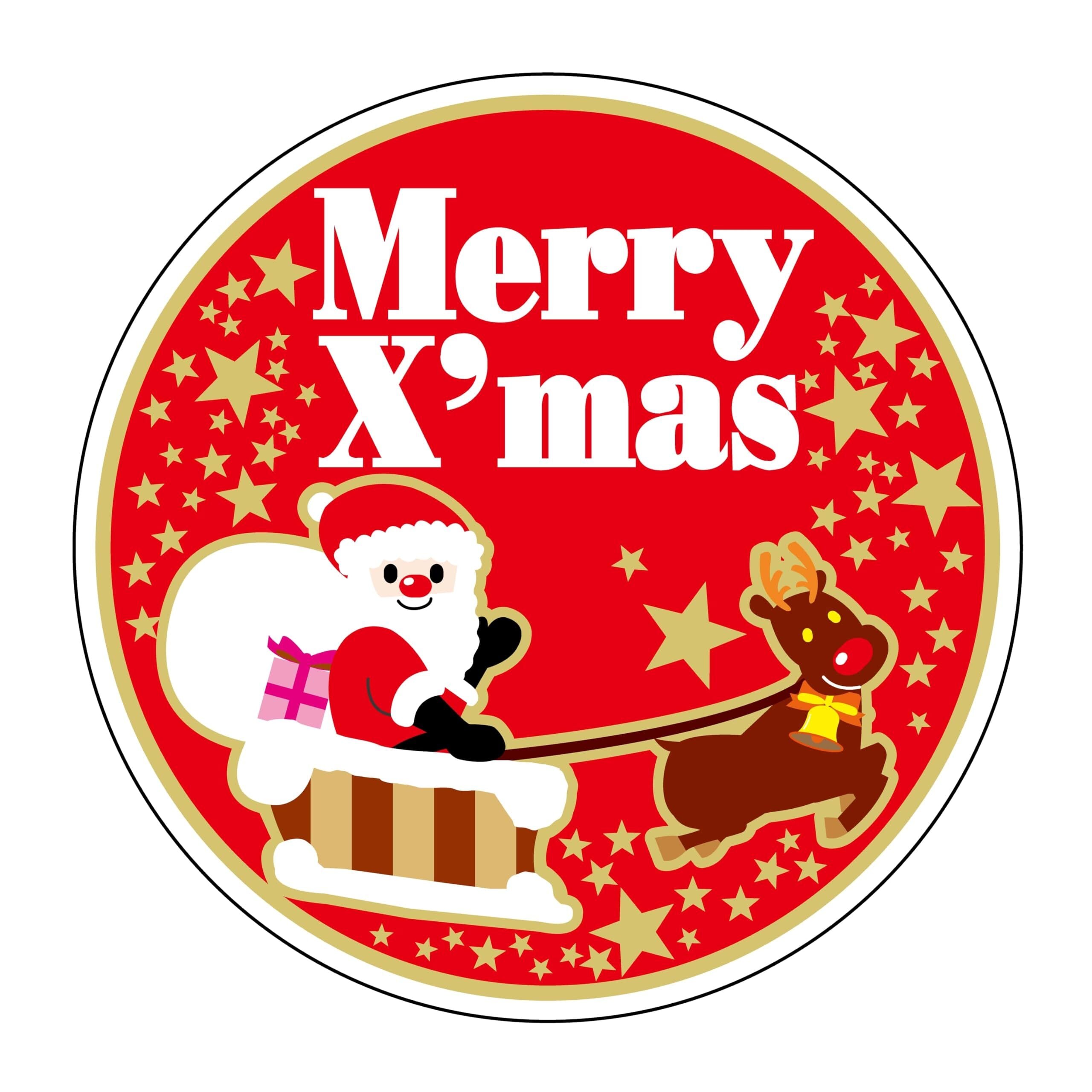ヒカリ紙工 SMラベル GY019 Merry X'mas 赤サンタ 500枚