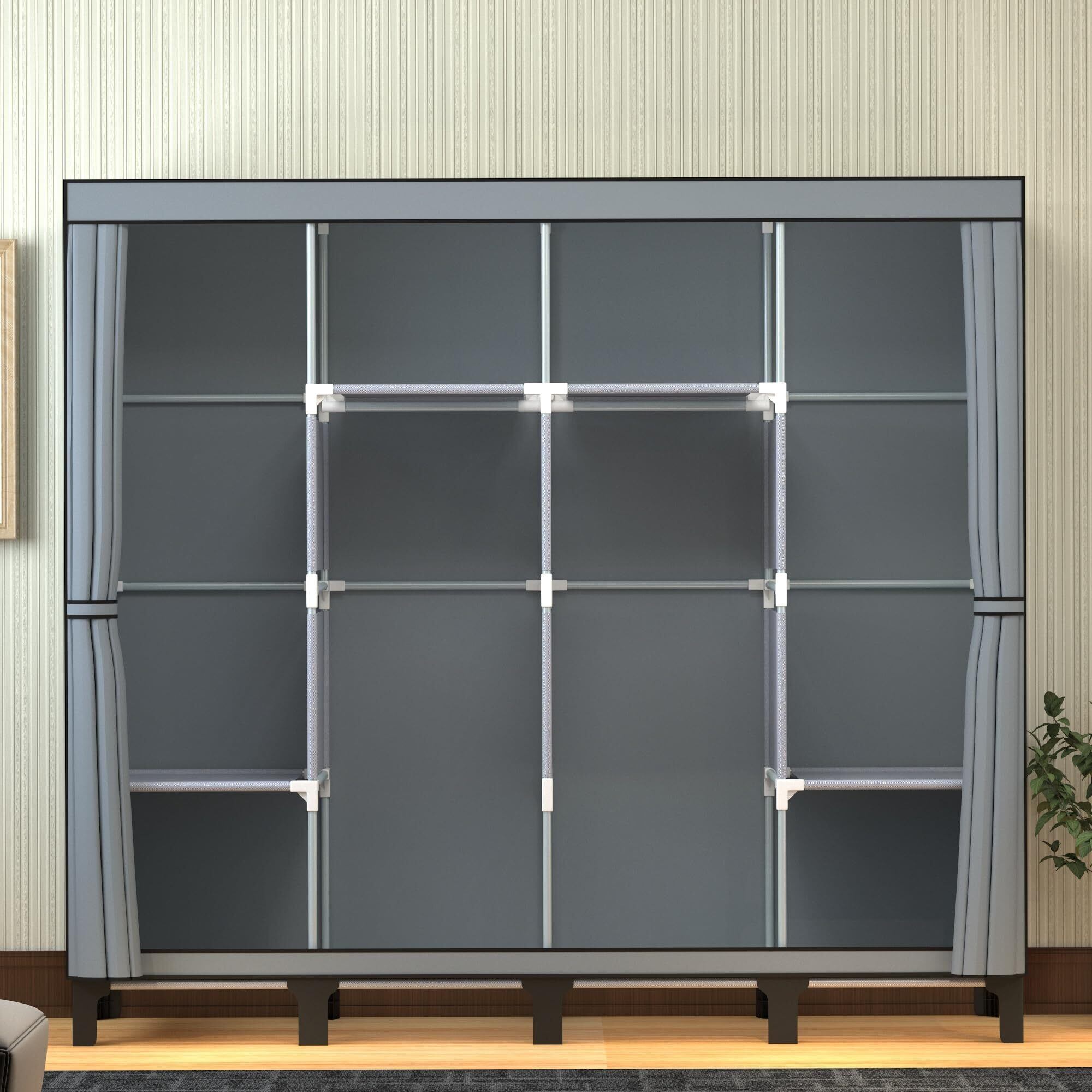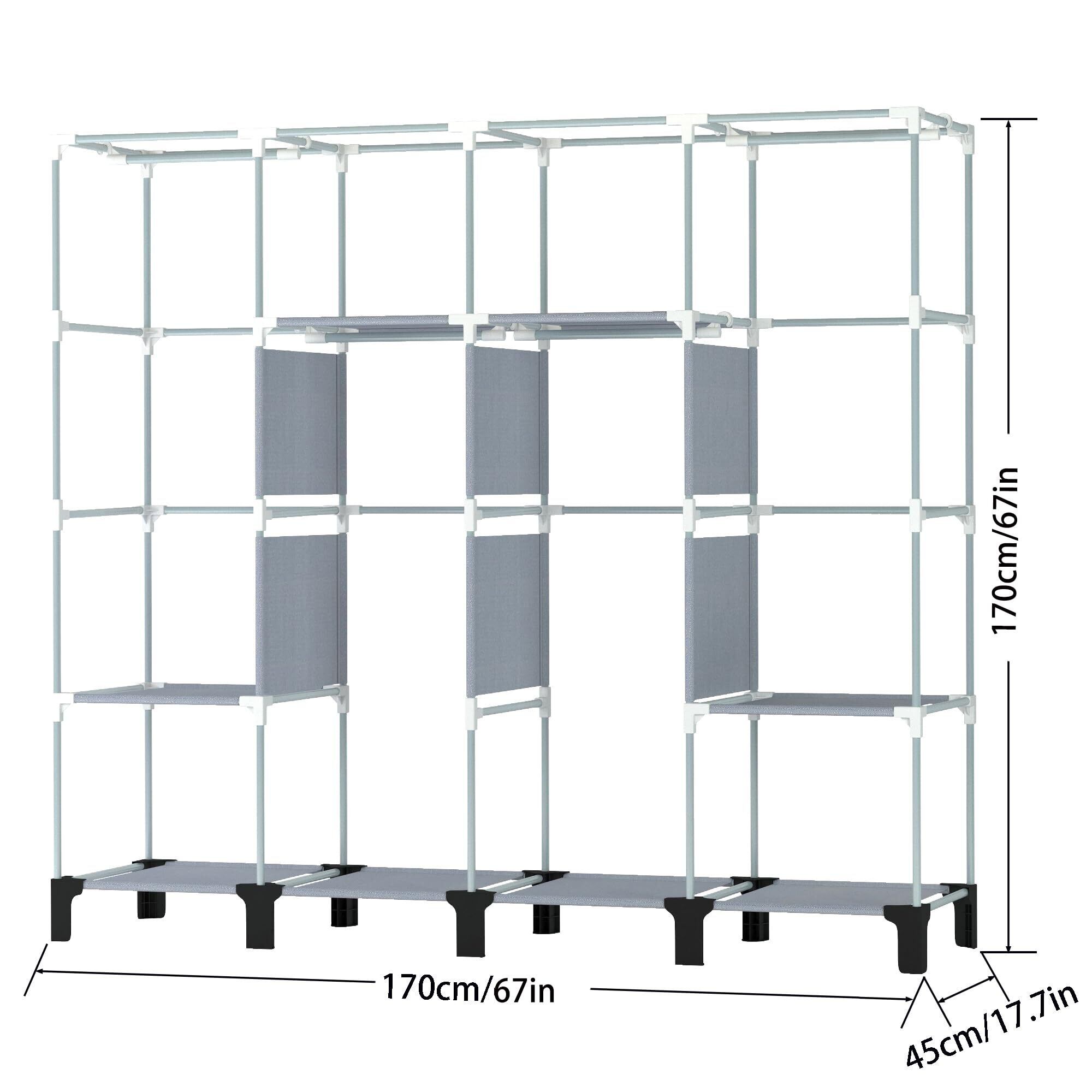 PSHUN RIGH不織布クローゼット ワードローブ 工具不要 大容量 大容量 簡単組立式 移動可能 収納棚 防水 防塵 防汚 ブラック 黑色 幅170×奥行45×高さ172cm (グレー)