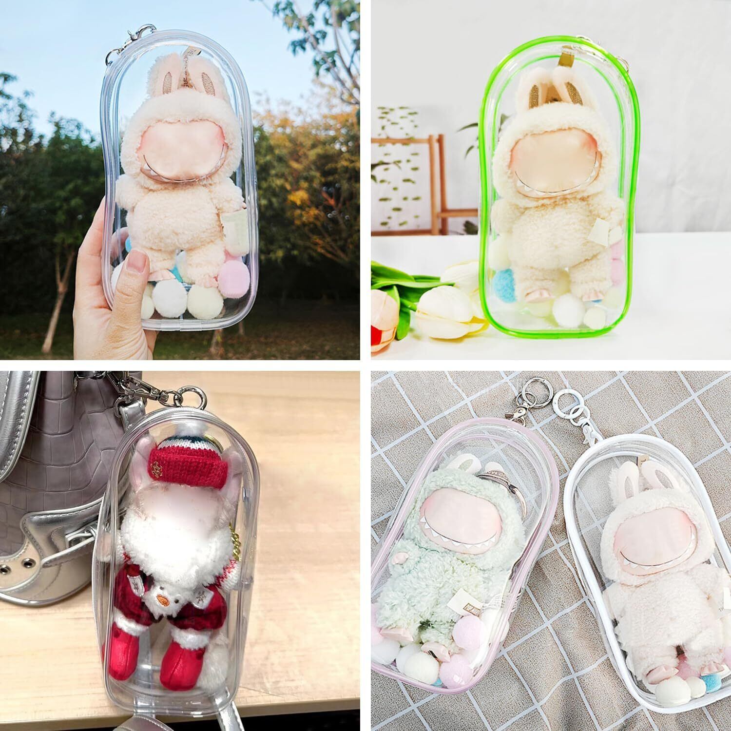 【デザイン】大容量13-17cmぬいぐるみと服の収納・装飾用のバッグ、透明ジッパーのデザイン、ジッパーの両側にプリントが入っています。ほぼ完全に透明です。ねんどろいどなどの人形に外出用の見せバッグ。扉形のため、人形のサイズにぴったり、人形はふらふらしません。