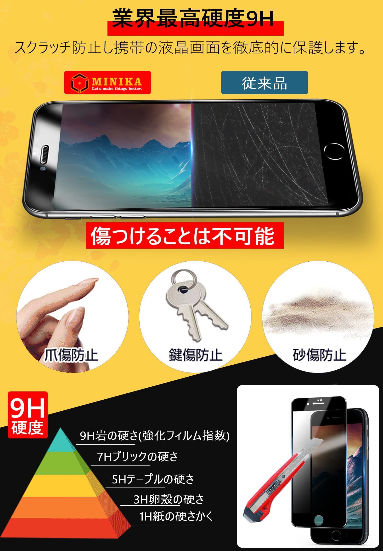 【指紋防止・飛散防止】 MINIKAのiPhone se2 のぞき見防止フィルム 撥油コーティング加工されているため、ホコリや指紋など汚れにくくなっています。付着しても簡単に拭き取れます。画面を美しいままに保つ、スムーズな操作が可能です。ガラスフィルムは飛散防止加工されておりますので、万が一割れの場合でも、飛び散らず張り付いた安全の状態になります。