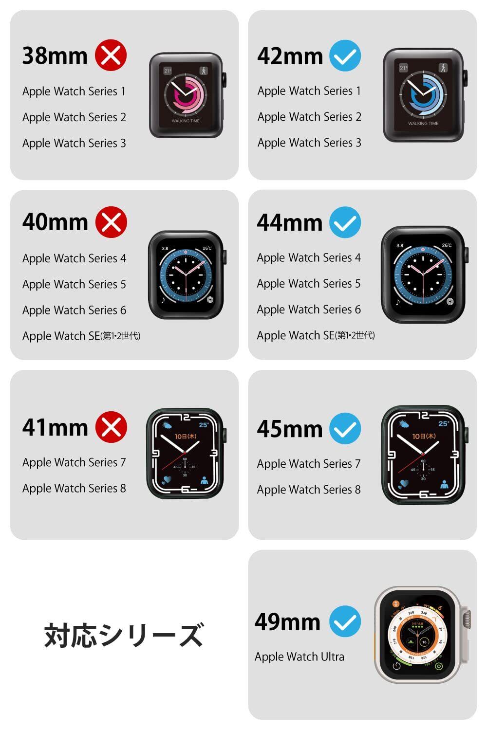 ■対応機種:Apple Watch Ultra [49mm]、Apple Watch Series 8、7 [45mm]、Apple Watch SE (第2世代)、SE、Series 6、5、4 [44mm]、Apple Watch Series 3、2、1 [42mm]