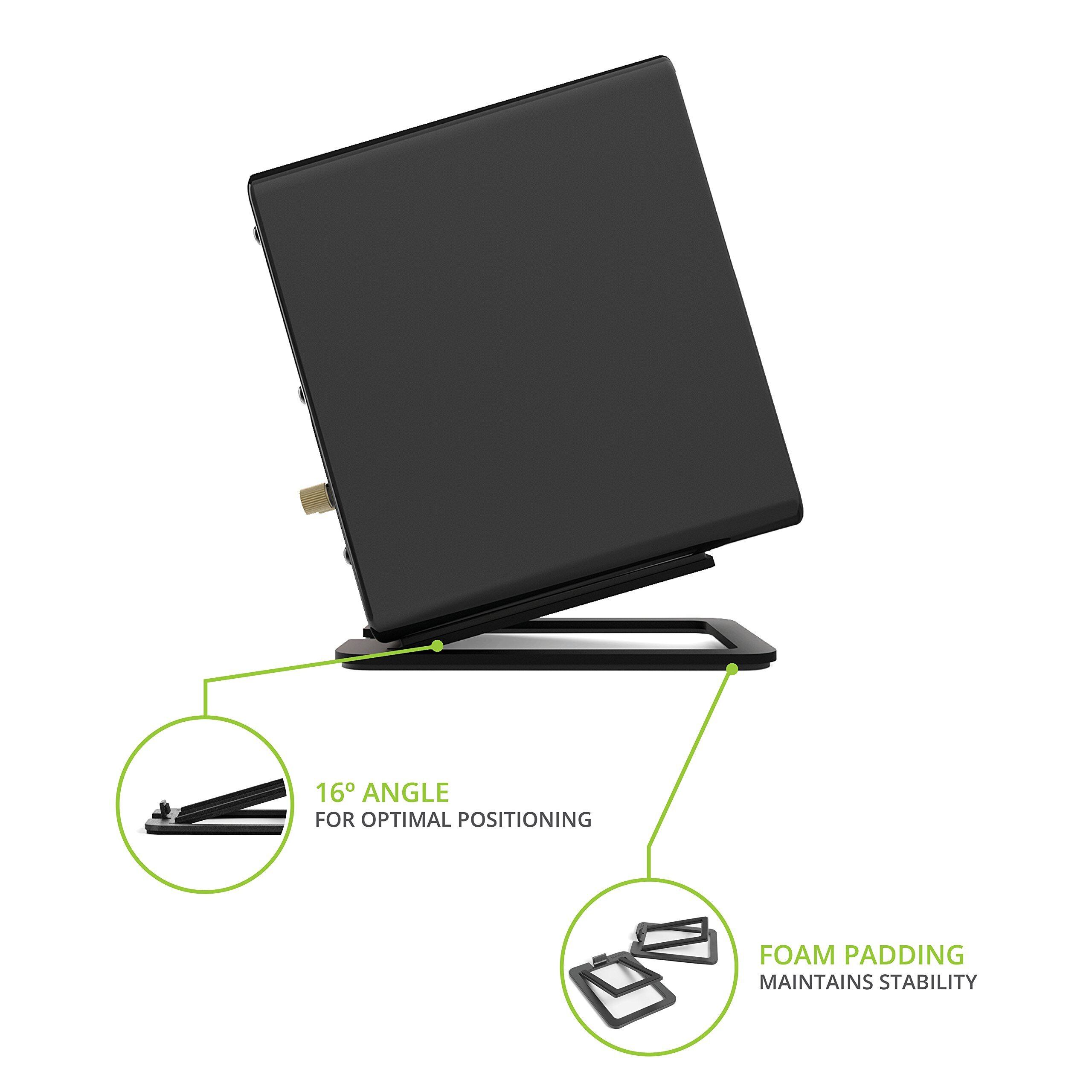 サウンドの向上 - S2スピーカースタンドは、耳に向かって16°傾けることでスピーカーを最大限に活用でき、高い周波数を見逃すことはありません。 各スタンドの上部と下部のフォームパッドは、安定性を維持し、望ましくない共振を減らすのにも役立ちます。