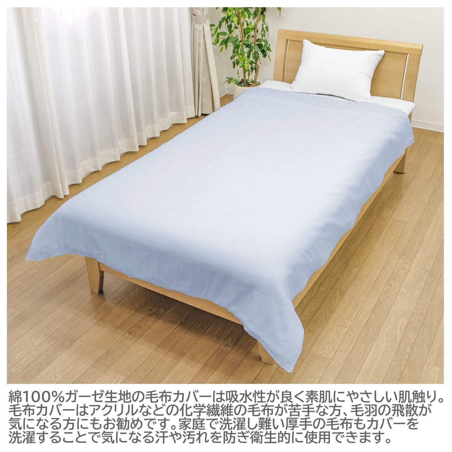 綿100%ガーゼ生地を使用した毛布カバー。吸水性が良く素肌にやさしい肌触りでふんわり感と柔らかさがあります。