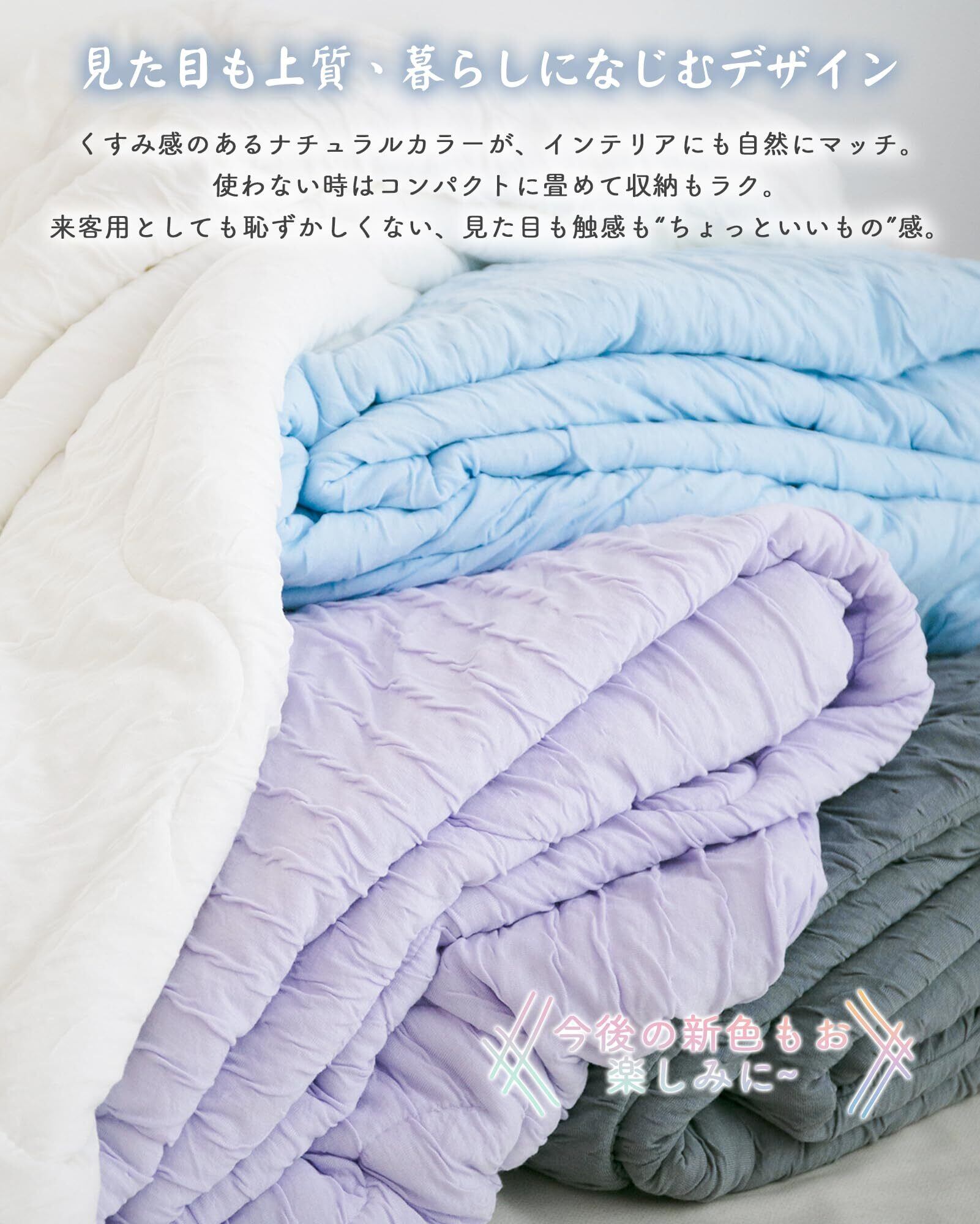 【Colors・品質保証】側生地:表層レーヨン(テンセル)100% 裏層ポリ99% ポリウレタン1% 中綿:ポリ100% マイクロエンドレス繊維 1D 450g/枚 万が一商品に不具合がある場合、ご連絡いただければ迅速に対応いたします。1年間の品質保証がございますので、安心してお買い求めください。