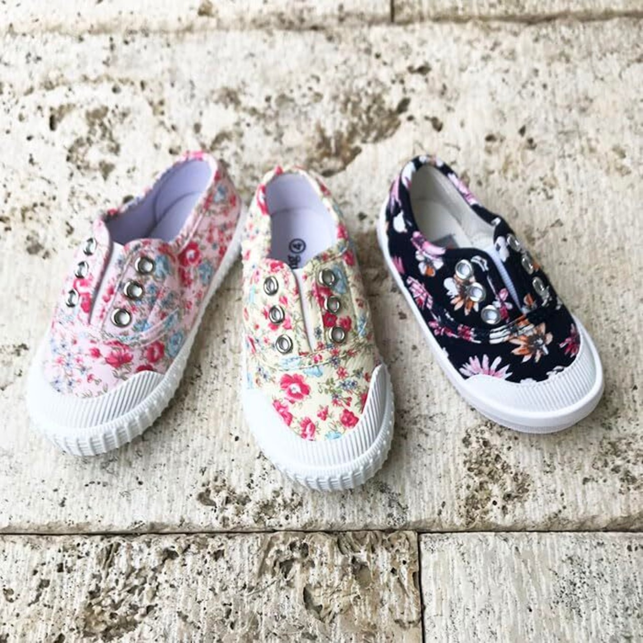 女の子の大好きな花柄の靴。ヒモ無しでスリッポンタイプで履けるので、楽チンです。ありそうでなかった花柄の靴ですが、子供っぽくないお洒落な花柄です。*スリッポンタイプの靴なので、脱げないようにぴったりめのサイズになっております。また、海外製品のため、靴の幅が細めのお作りになっております。サイズに迷われた場合は、1サイズ大きめのサイズを選択されることをおススメいたします。