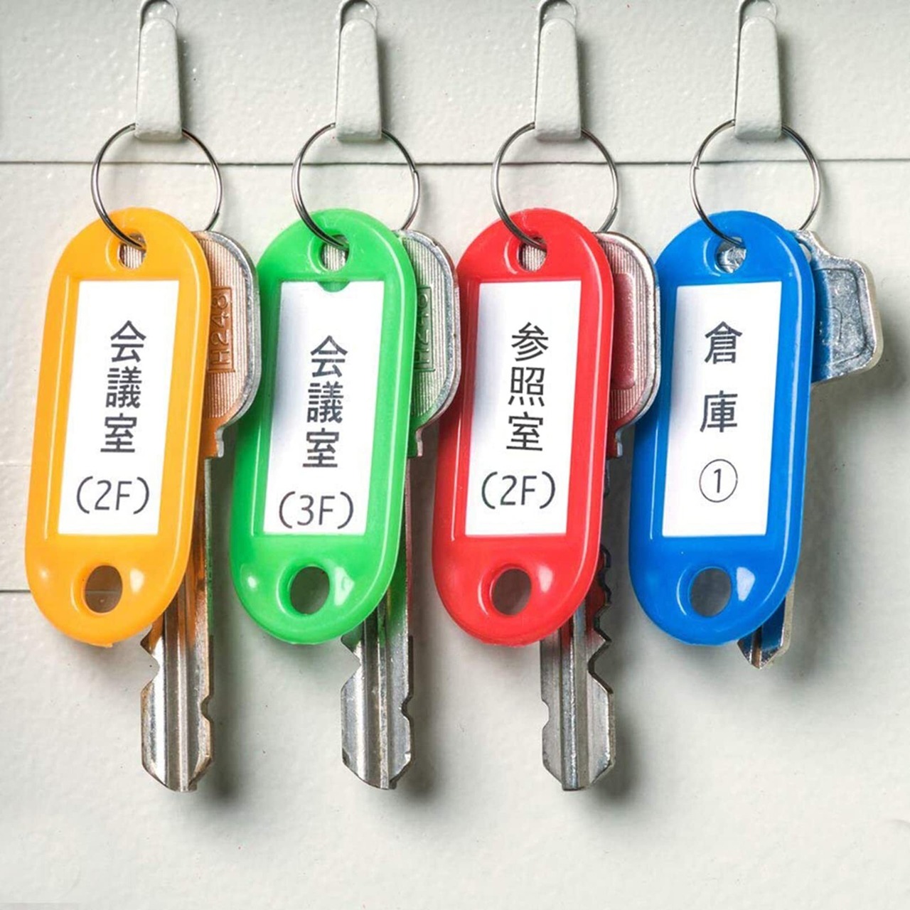 色分類できるキーホルダーが便利です。また、キーホルダーの中には、書き込み可能な見出し用紙が付いています。