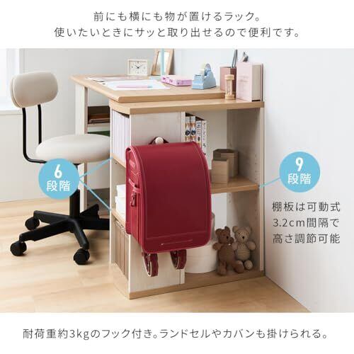 アイリスプラザ 学習机 勉強机 コンパクトデスク 収納棚付き 2個でツインタイプに 幅: 100cm FJ-024-IR ホワイト&ビーチ