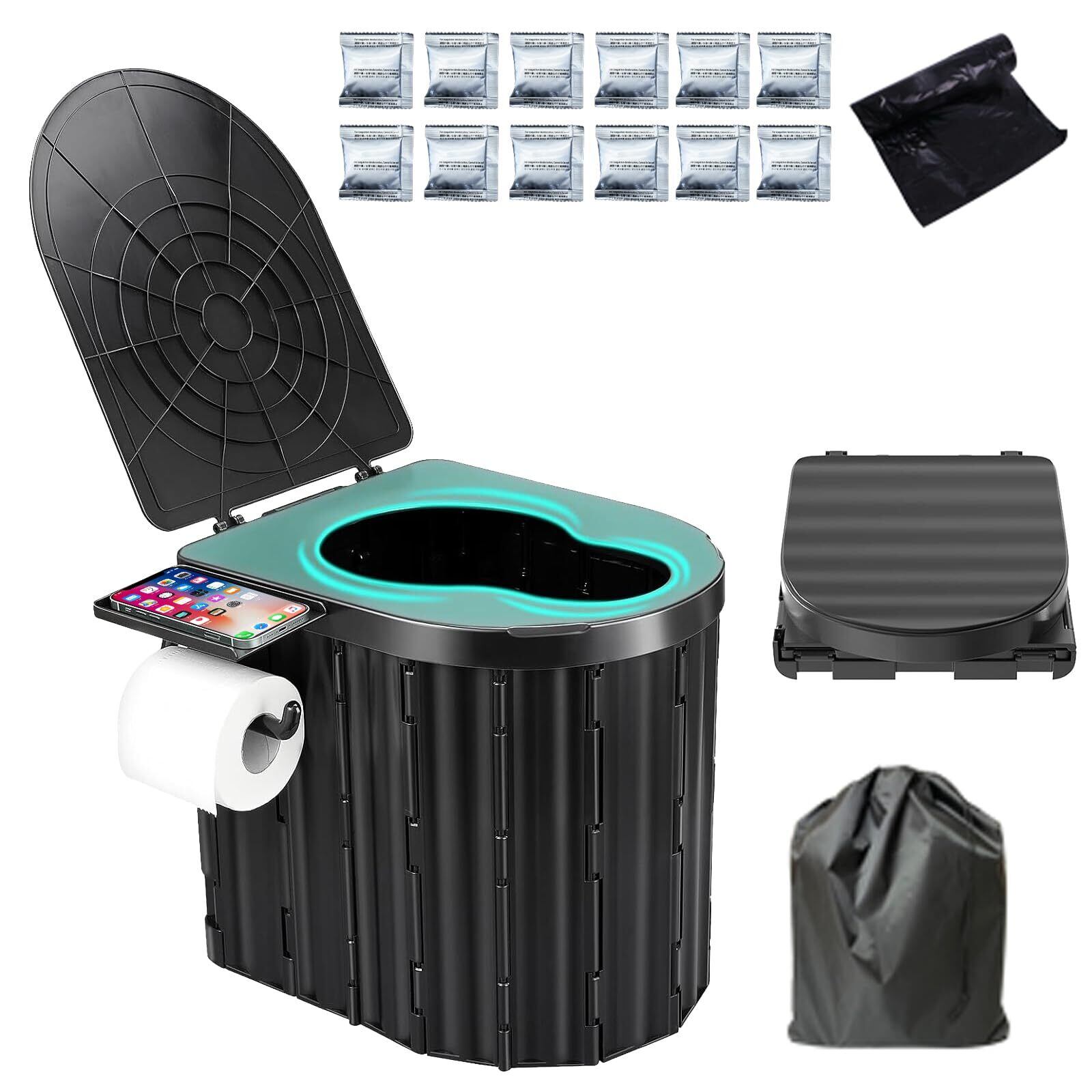 G GO HO 簡易トイレ 非常用 耐荷重200kg ポータブルトイレ 携帯トイレ 折りたたみ式 人間工学デザイン 仮設トイレ 防災グッズ 災害 キャンプ 介護用 処理袋&凝固剤付き | yankees