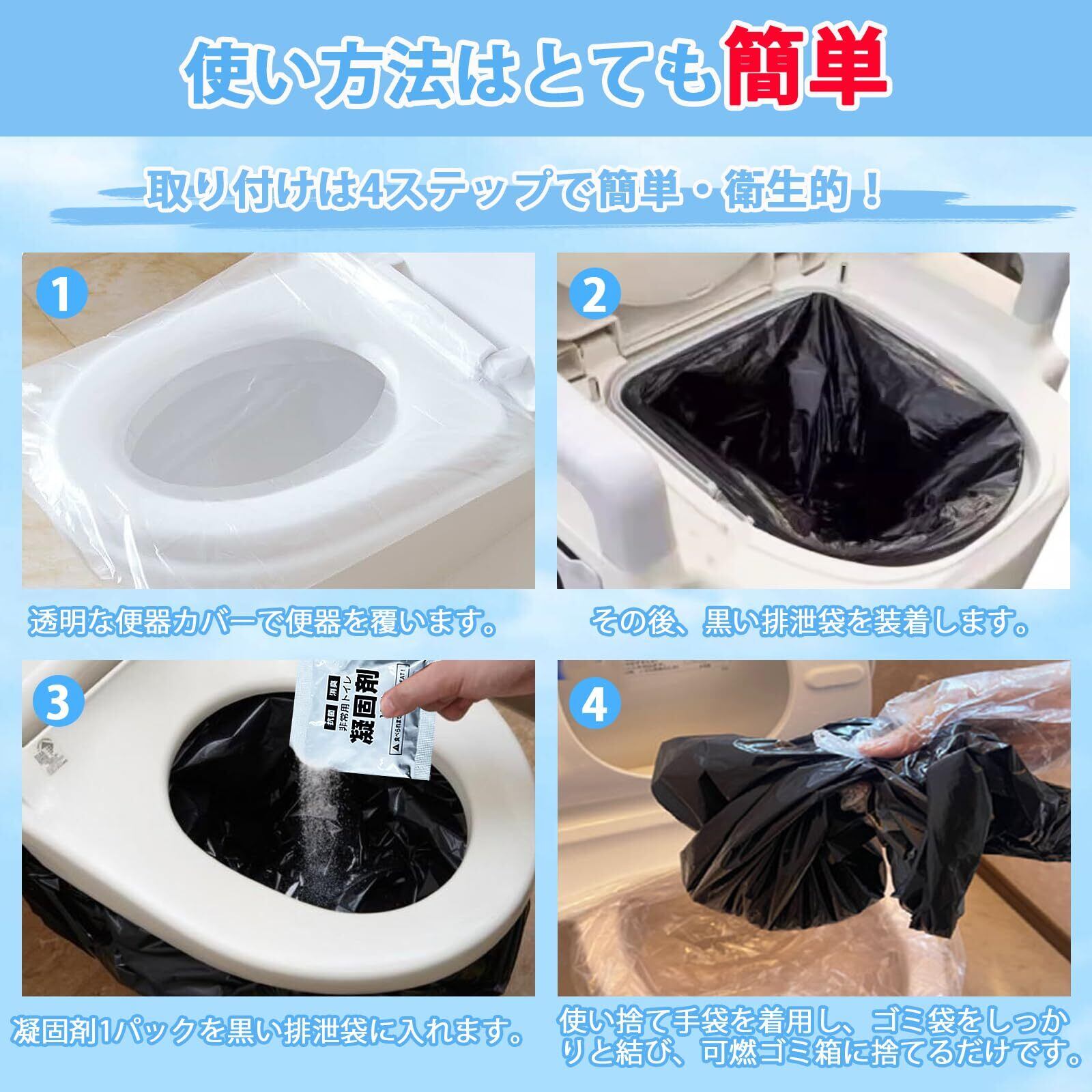 【豊富な付属品】凝固剤*100回分、黒い排泄用袋*100枚、使い捨て手袋*100セット(200枚)、便座カバー*6枚、黒い防臭保管袋*6枚。いつ発生するか分からない自然災害のために、日ごろの備えが必要となります。災害グッズ、防災用品、災害用トイレ、避難グッズとして備蓄をしておくと安心です。簡易トイレ、携帯トイレ、仮設トイレとしてご家庭はもちろん企業や自治体でも備蓄しておくと安心です。