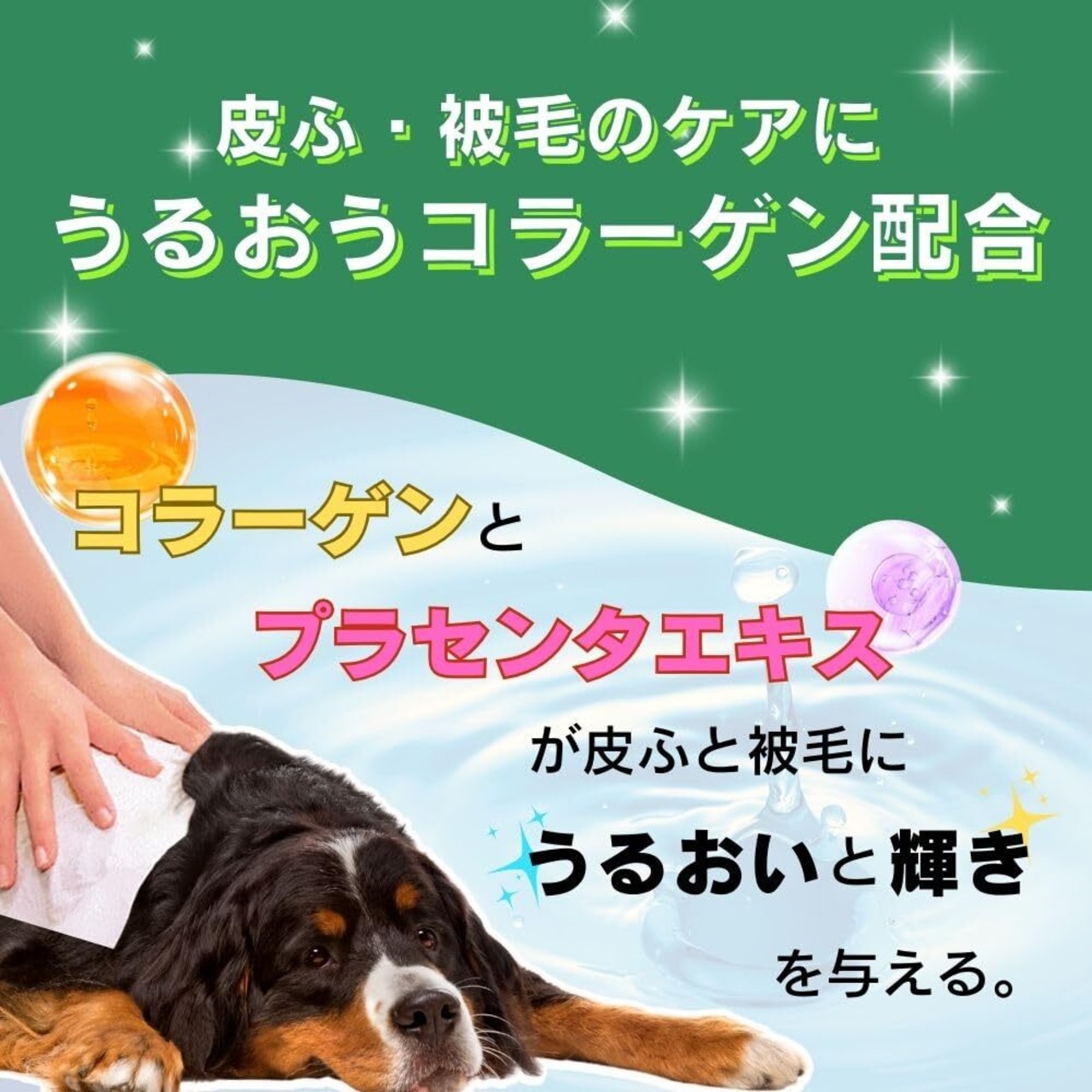 ●毎日スッキリ! 汚れ・ニオイを拭きとる ●シートの繊維が、汚れ・抜け毛・ハウスダスト・花粉などをしっかりキャッチ ●なめても安心な洗浄成分配合(食品添加物) ●コラーゲンとプラセンタエキスのW配合で、皮ふと被毛がうるおう ●ほのかなソープの香り