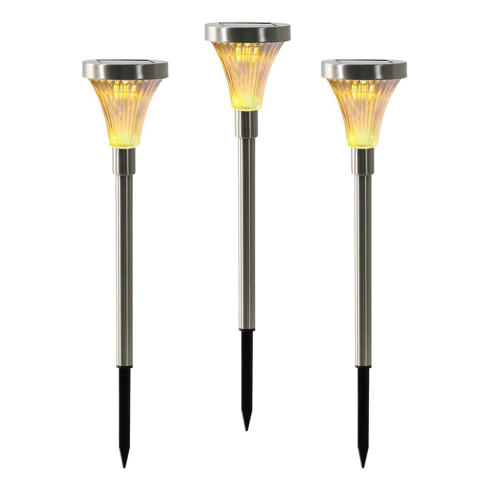 GWSOLAR【ステンレスポール/ソーラーライト3個組】点灯色:電球色、スタイリッシュ・スリムタイプ/モダン的なおしゃれな光/地中差し込みタイプ/光センサー夜間自動点灯・消灯/明るさ:10ルーメン ・ 頑丈耐久なステンレスポール/簡単差し込み設置/ガーデン・花壇、パーティ装飾・パーク小道、玄関先 / 304ステンレス材質、日亜製 LED、GWソーラー 型番:GW-SS122/WW