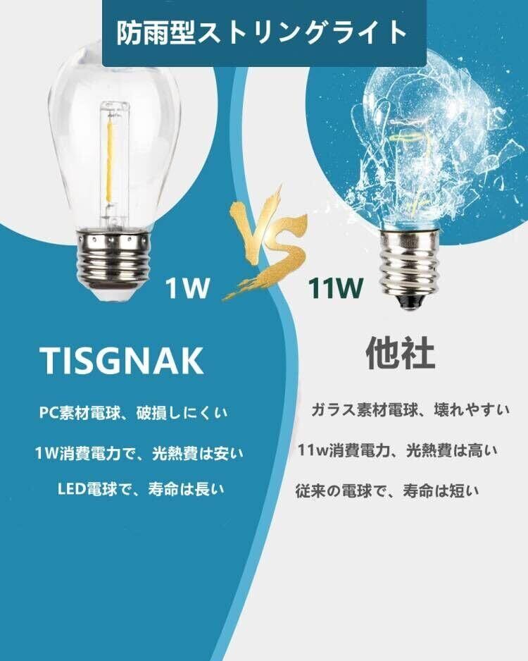 【安全&破損しにくい】:電球は環境に優しく破損しにくいPC素材で作られており、耐久性に優れるストリングライトです。品質と安全性は日本の国内基準に達しているので、安心してご利用頂けます。
