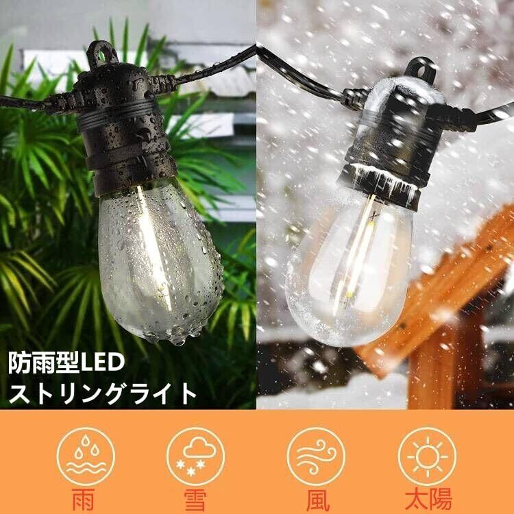 防雨型LEDストリングライト 15M 15個LED電球付き(予備電球2個) 2700K電球色 PC素材 破損しにくい 連結可能 LEDイルミネーションライト屋内/屋外照明 ガーデンライト クリスマス イルミネーション 装飾ライト誕生日パーティー電飾 結婚式飾り