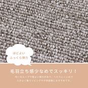 火が点きにくく、万が一火が点いても自己消火性があるため燃え広がりにくい防炎加工付きカーペット。弾力があり復元性に優れていてへたりにくく、ふかふかとした肌触りが特徴です。毛羽立ち感のないスタイリッシュなループパイル仕様です。