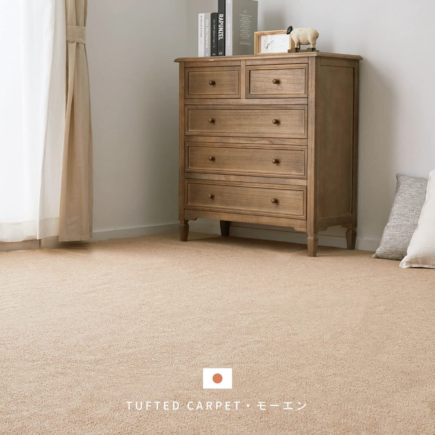 萩原 敷き詰めカーペット ベージュ 江戸間6畳 「モーエン」 防炎 抗菌 防臭 無地 業務用 店舗 施設 ホット対応 日本製