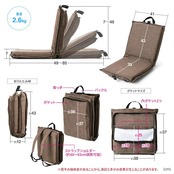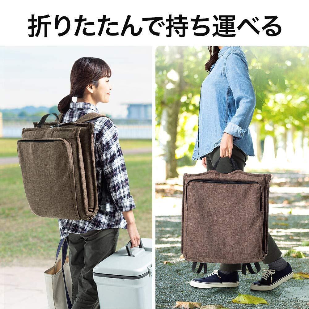 イーサプライ アウトドア座椅子 リクライニング 42段階 コンパクト 折りたたみ 携帯用 布張り 背負える クッション 小物入れ EEX-CH70ZBR