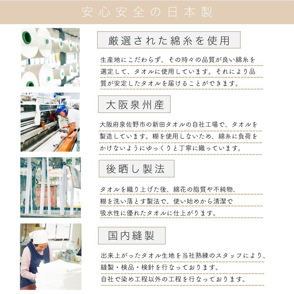 【拭き残し感ゼロへ】生地を織り上げた後に綿花の油分や不純物・糊を洗い落とす「後晒し製法」により吸水性に優れ、使い始めから拭き残し感が感じにくいです。※柔軟剤の使用は吸水性を疎外するので、できるだけ使用しないでください。