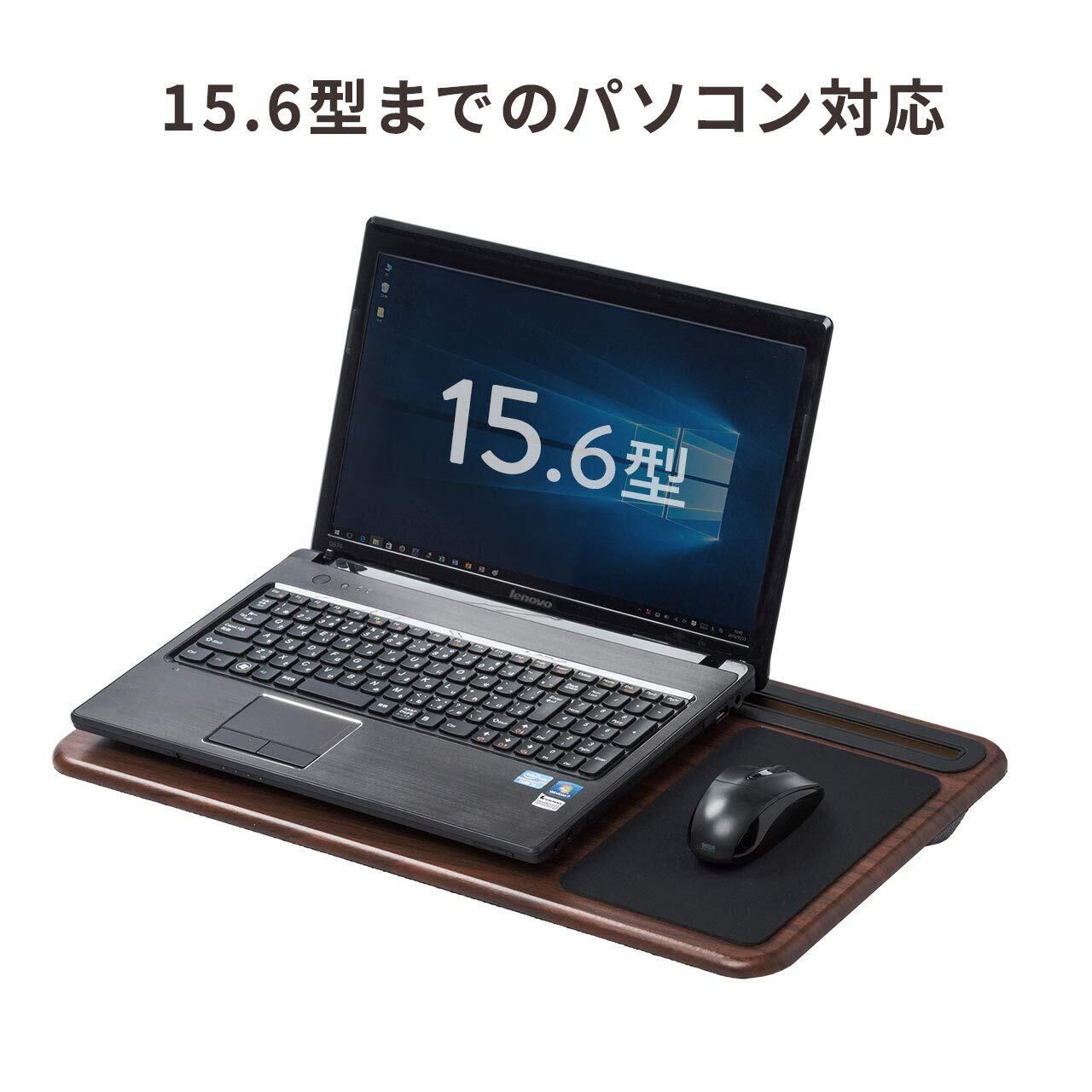 サンワダイレクト ひざ上テーブル ノートPC/タブレット用 15.6型対応 マウスパッド・スマホ/タブレットスタンド・クッション付き 木目調 200-HUS008
