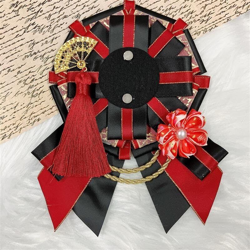ジートリガー(G triger) 和風痛ロゼット 飾りロゼット 缶バッチロゼット 多種類 パーツ チェーン リボン 痛バッグ飾り 推し ハンドメイド DIY ロゼット飾り キャラクター レッド | yankees