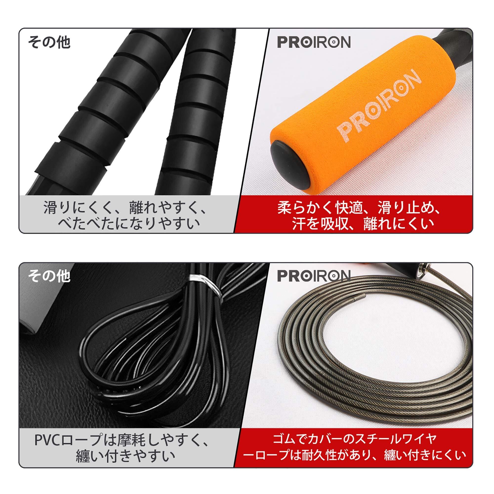 PROIRON 縄跳び なわとび 大人用 ダイエットトレーニング用 ねじれ防止 スチールロープ ベアリング付き 長さ調節可 4色
