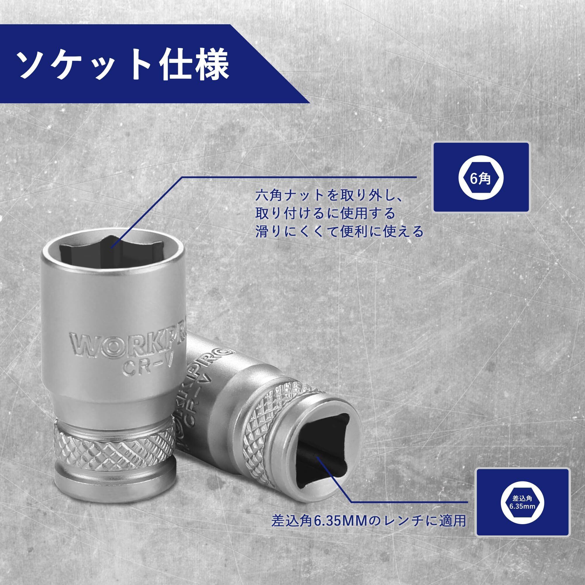 WORKPRO ソケットレンチセット ラチェットレンチ 差込角6.35mm 12点組 六角ソケット クイックリリースラチェットハンドル 車載工具 ホルダー付き 車 バイク 機械点検 メンテナンス