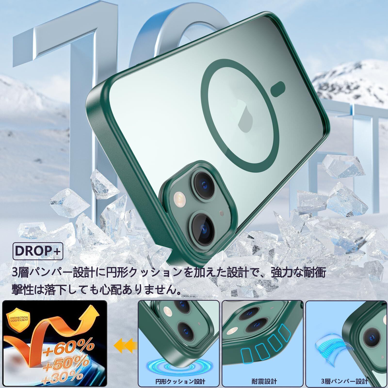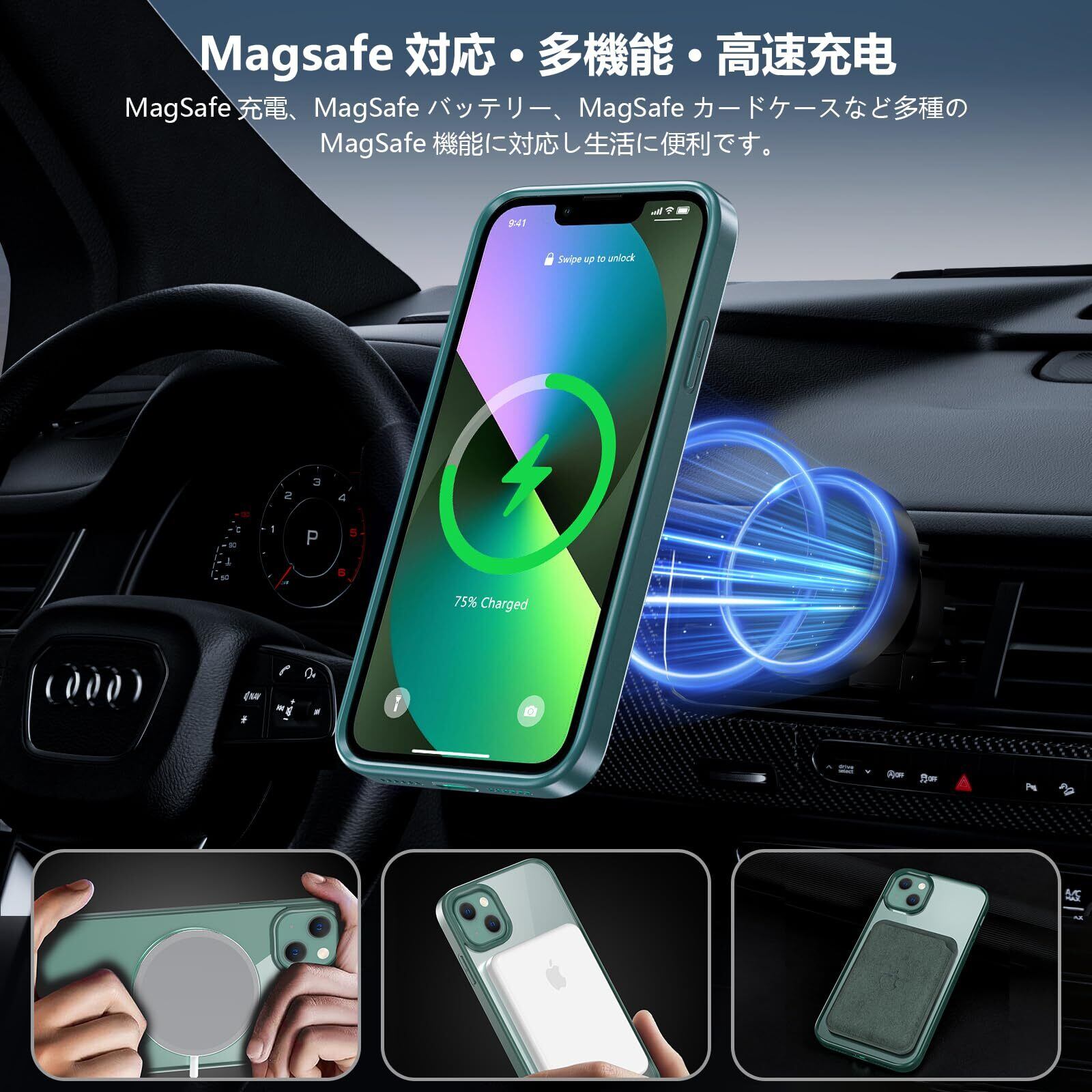 iPhone13 ケース iPhone14 ケース BESINPO【ガラスフィルム付き・MagSafe対応】マグネット搭載 マグセーフ対応 いphone14 カバー 米軍規格 耐衝撃 耐久性 アイフォン13ケース 黄ばみなし ストラップホール付き iPhone 13/14 用ケース 6.1インチ グリーン+クリア
