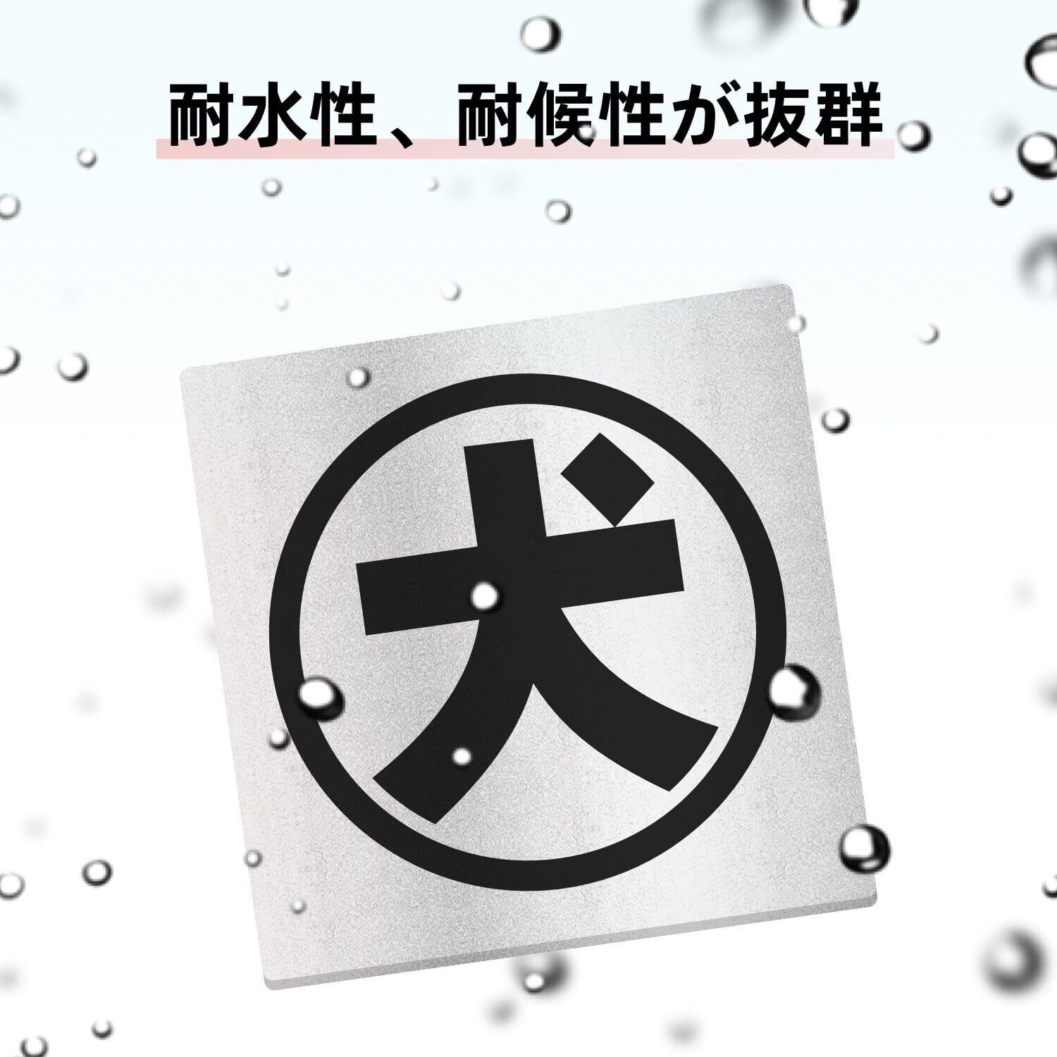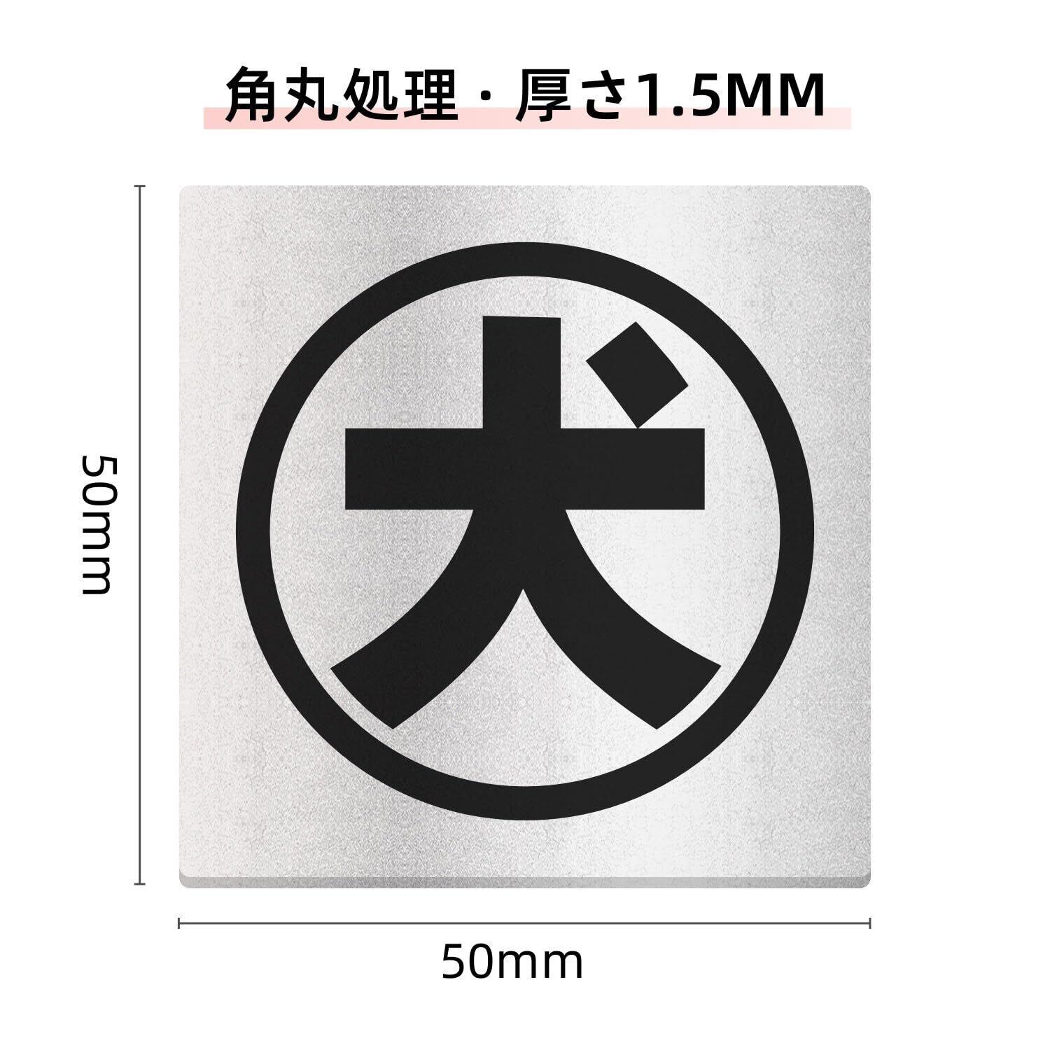 犬シール【防犯ステッカー】50x50mm サインプレート(両面テープ付き) 1.5㎜アクリル製 軽量 耐水 耐候 グレー 銀 シール式 (2枚入 ブラック)