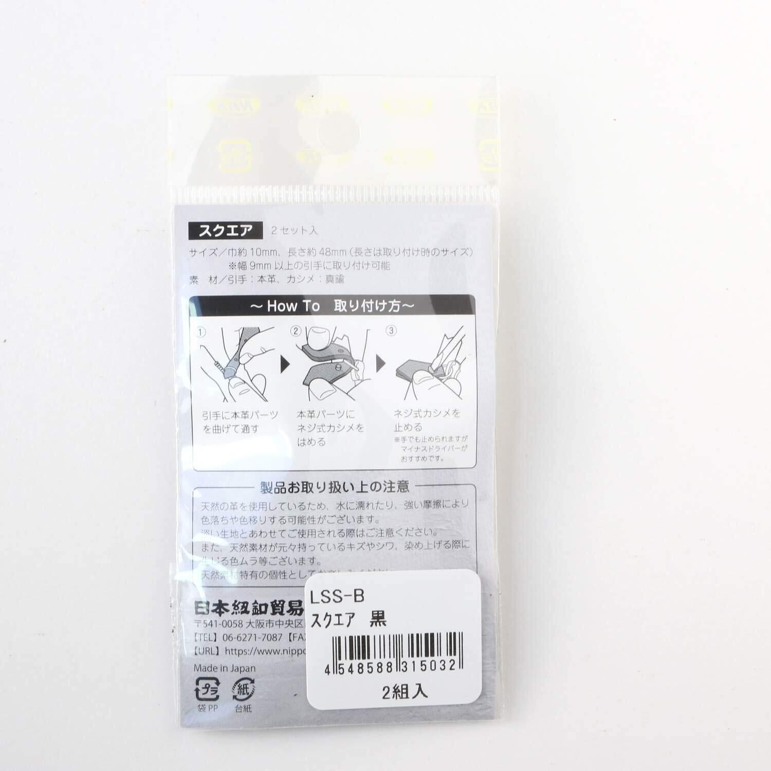 日本紐釦貿易(Nippon Chuko)NBK 本革 ファスナー引き手パーツ スクエア型 ネジ式カシメ付き 約10mm×48mm 黒 LSS-B