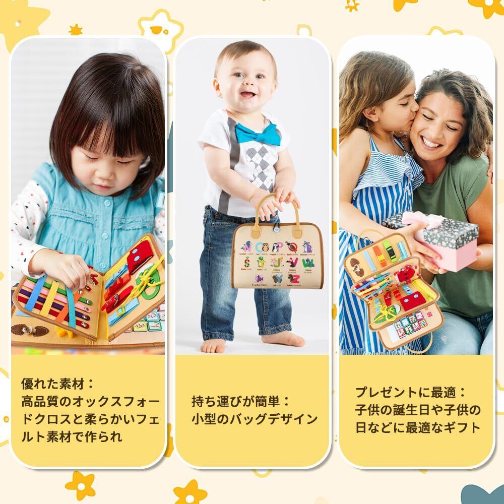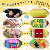 【お着替えの練習に】衣類のよく使われている留め具、ボタンなどを網羅しており、お子様のお着替えの練習に役立ちます。安全性が高く、頑丈にできているので、子供たちも思いっきり遊べます。1~6歳のお子様の遊びにピッタリです。※0~1歳では力が必要なボタンは開けられない可能性があります