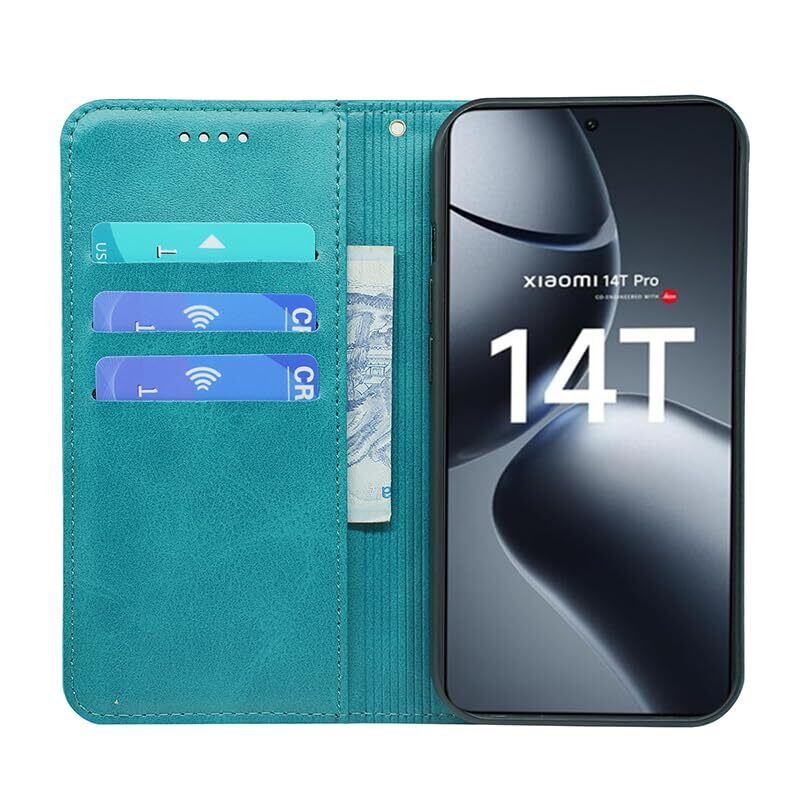 Xiaomi 14T Pro ケース 手帳型 Xiaomi 14TPro 手帳型ケース Xiaomi 14T Pro スマホケース カバー 手帳型 PUレザー カード収納 財布型 耐衝撃 ケース マグネット スタンド機能付き 5色(Xiaomi 14T Pro ケース 手帳型) (グリーン)