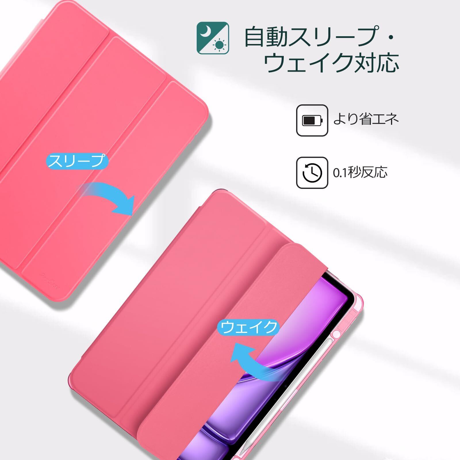 ProCase iPad Air 13 ケース M3 2025 / M2 2024 ペン収納 iPad Pro 12.9 6世代/5世代/4世代/3世代通用 スマートカバー Pencil Pro/USB-C対応 耐衝撃 自動ウェイク/スリープ(メロンピンク)