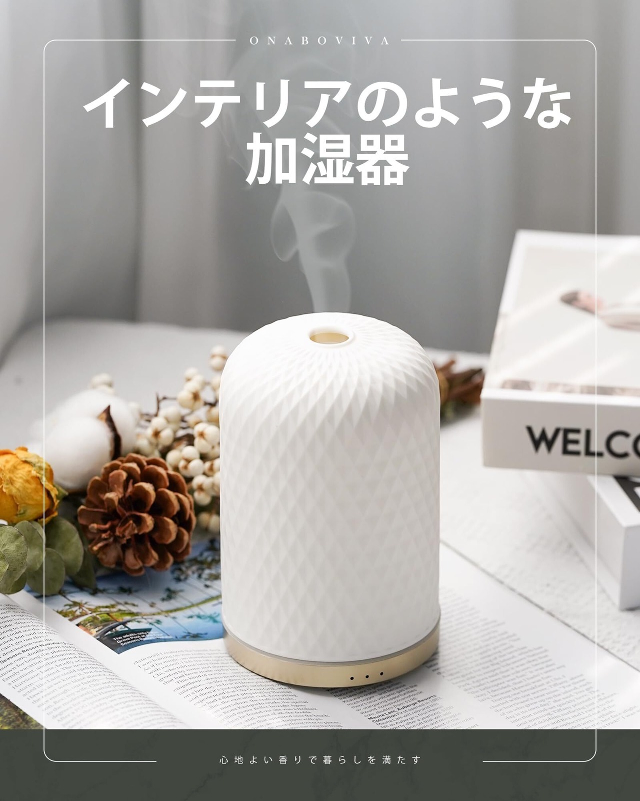 Onaboviva 加湿器 アロマディフューザー 小型 卓上 アロマ対応 おしゃれ 超音波式 タイマー 空焚き防止 静音設計 コンパクト お手入れ簡単 110ML 乾燥対策 花粉症対策 部屋 オフィス (ホワイト) | yankees