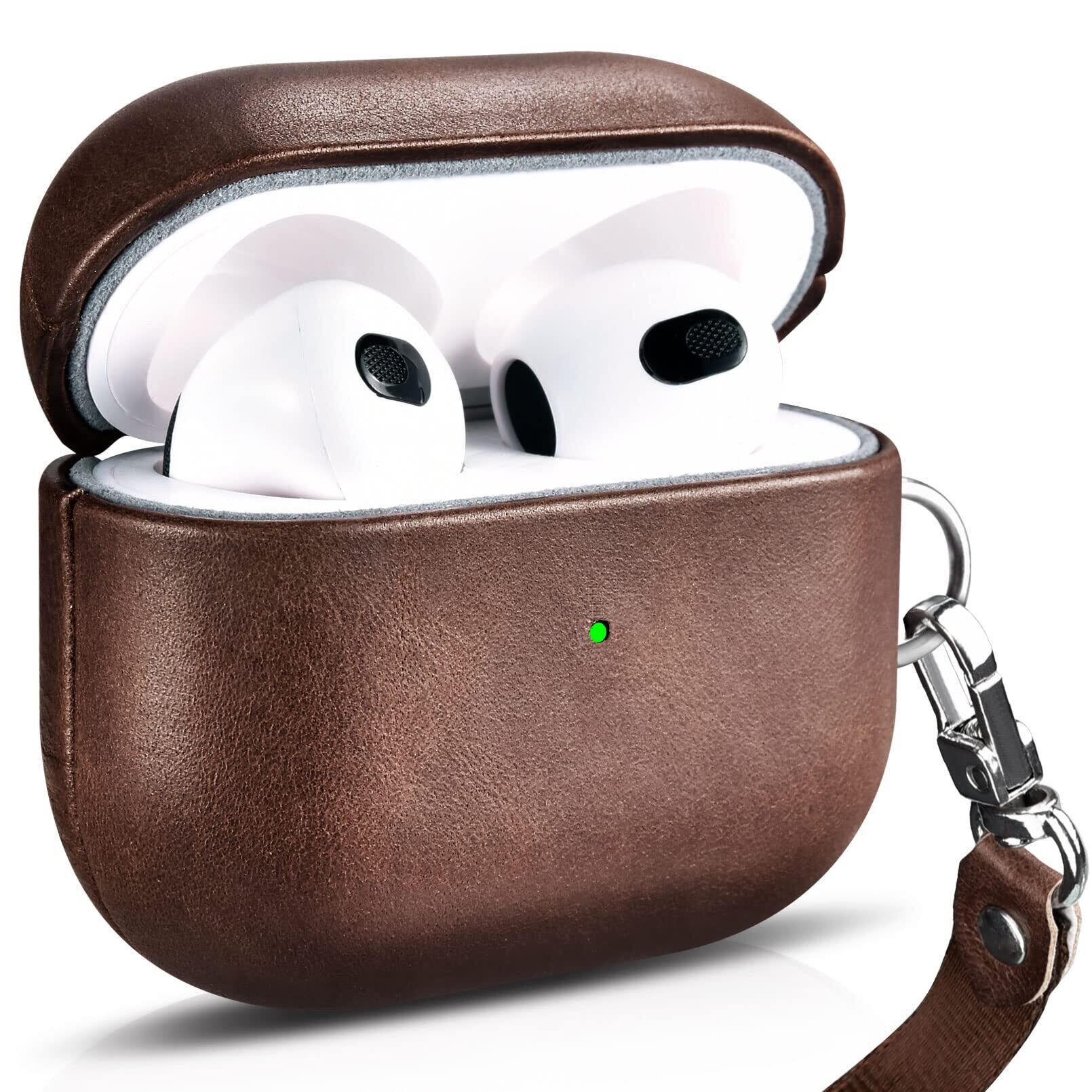 【高品質のレザー素材】AirPods 3 レザーケース高品質の革素材を使用し、優れた仕上がり、耐久性と高品質。 柔らかい裏地はAirPods3の元のデザインを破壊しません。革素材は滑らかさに優れています、指紋汚れを防止し、AirPods 3をキズや汚れからしっかり守ってくれます。