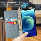 この手帳型ケースは、高級牛本革を使用しており、美しいブルー×ブルーの配色が魅力です。シンプルでありながら高級感溢れるデザインが、持つ人のスタイルを引き立てます。