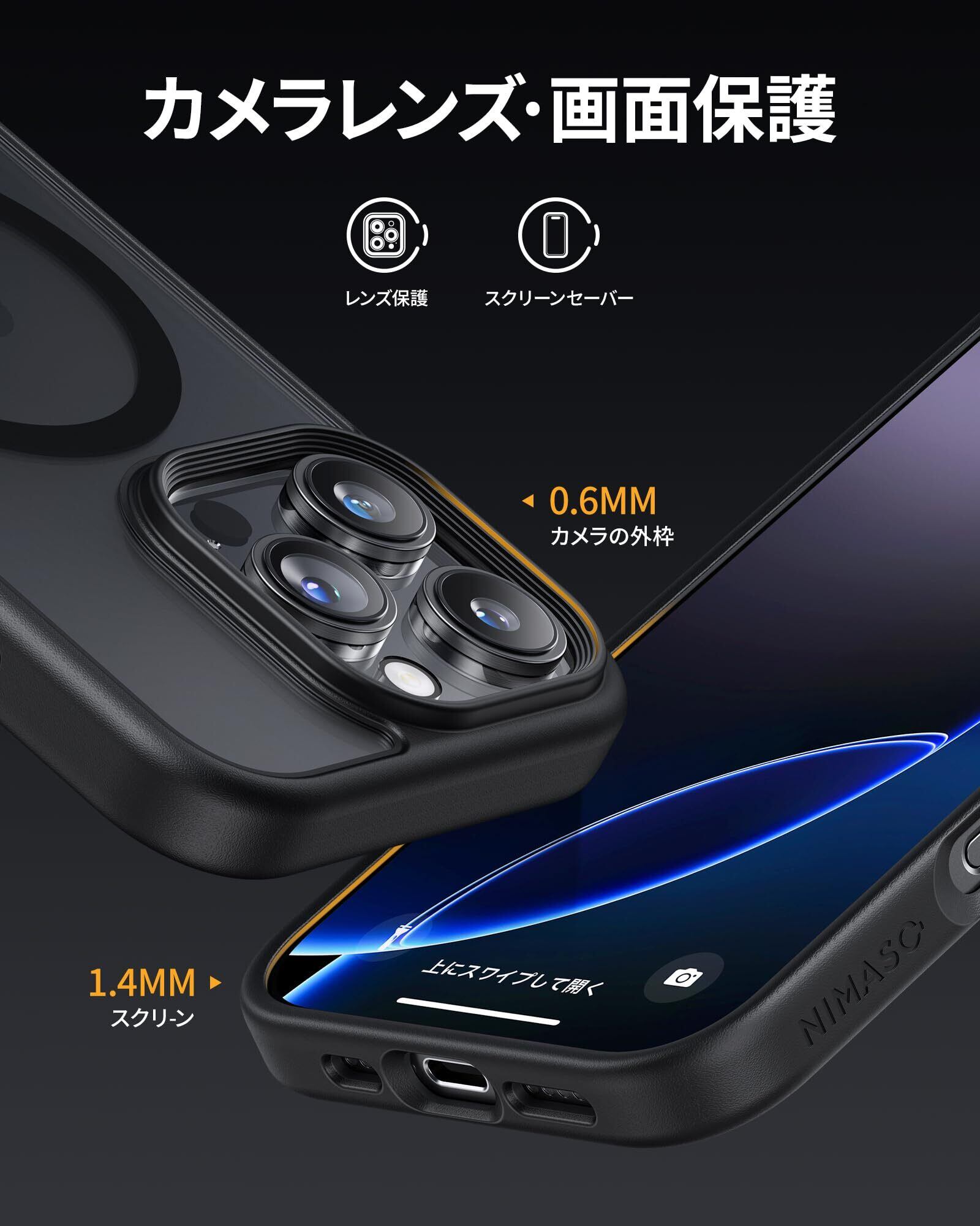 NIMASO iPhone 16 Pro Max 用 ケース MagSafe対応 スマホケース マグセーフ対応 カバー 滑り止め マット仕上げ 全面保護 いPhone16 Pro Max 対応 耐衝撃 米軍MIL規格取得 ワイヤレス充電 ストラップホール付き 携帯スマホケース アイフォン16プロマックス対応 (6.9インチ) ブラック (黒羽シリーズ)NSC24G1451 | yankees