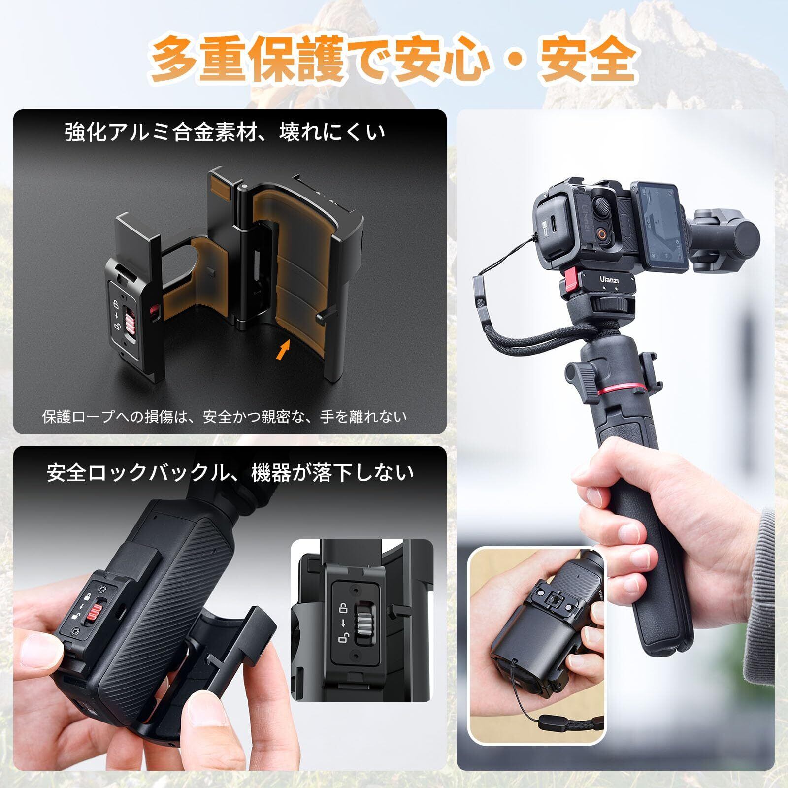 【多重保護で安心・安全】強化アルミニウム合金製で、壊れにくい。ケージの内側にはシリコン保護パッドがあり、カメラを傷や衝撃から守ります。 ケージの底にはカメラストラップを取り付けるための穴があります。Pocket3用ケージには安全ロックが付いており、カメラをより安全に取り付けることができます。