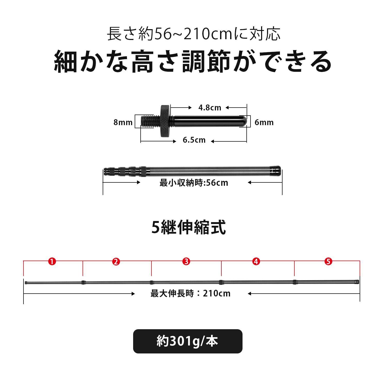 【素材のこだわり】カーボン材質を採用し、軽量かつ強度を持ています。折れにくくて、頑丈なポールです。