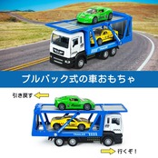 【プルバックカー】電池が車の中に付属して、大型自動車運搬車を押しながら後ろに引けてから放せるだけで、前に進みます。頑丈な合金を採用している車おもちゃで、高品質の材料を採用し、耐久性に優れています。小さな手に適した完璧なサイズです。6歳以上の子供に適しています。
