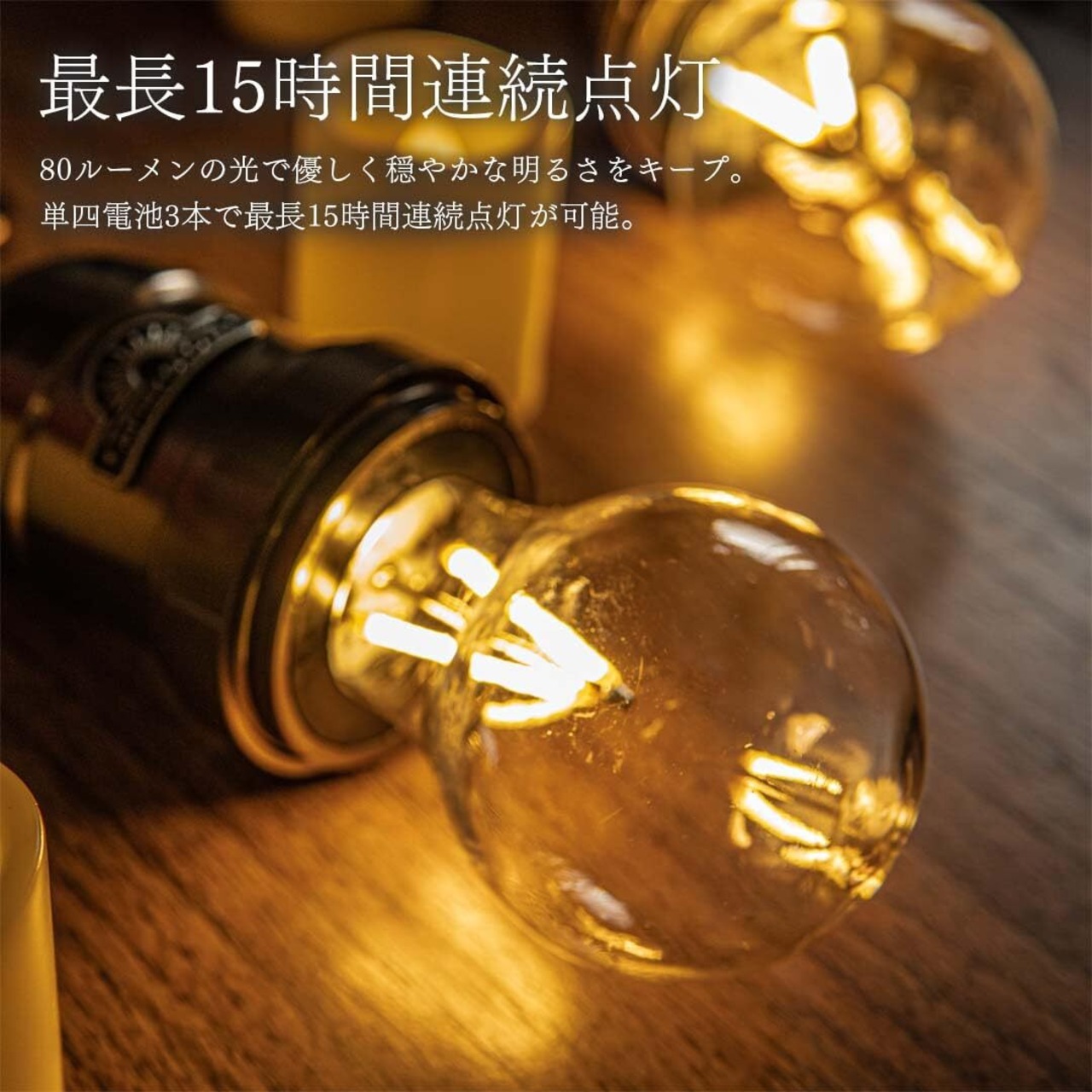 ポリカーボネート製の電球を採用しており、軽量ながらも耐衝撃性に優れています。安心して持ち運びでき、長時間の使用にも対応。夜間の明るさをしっかりと確保します。