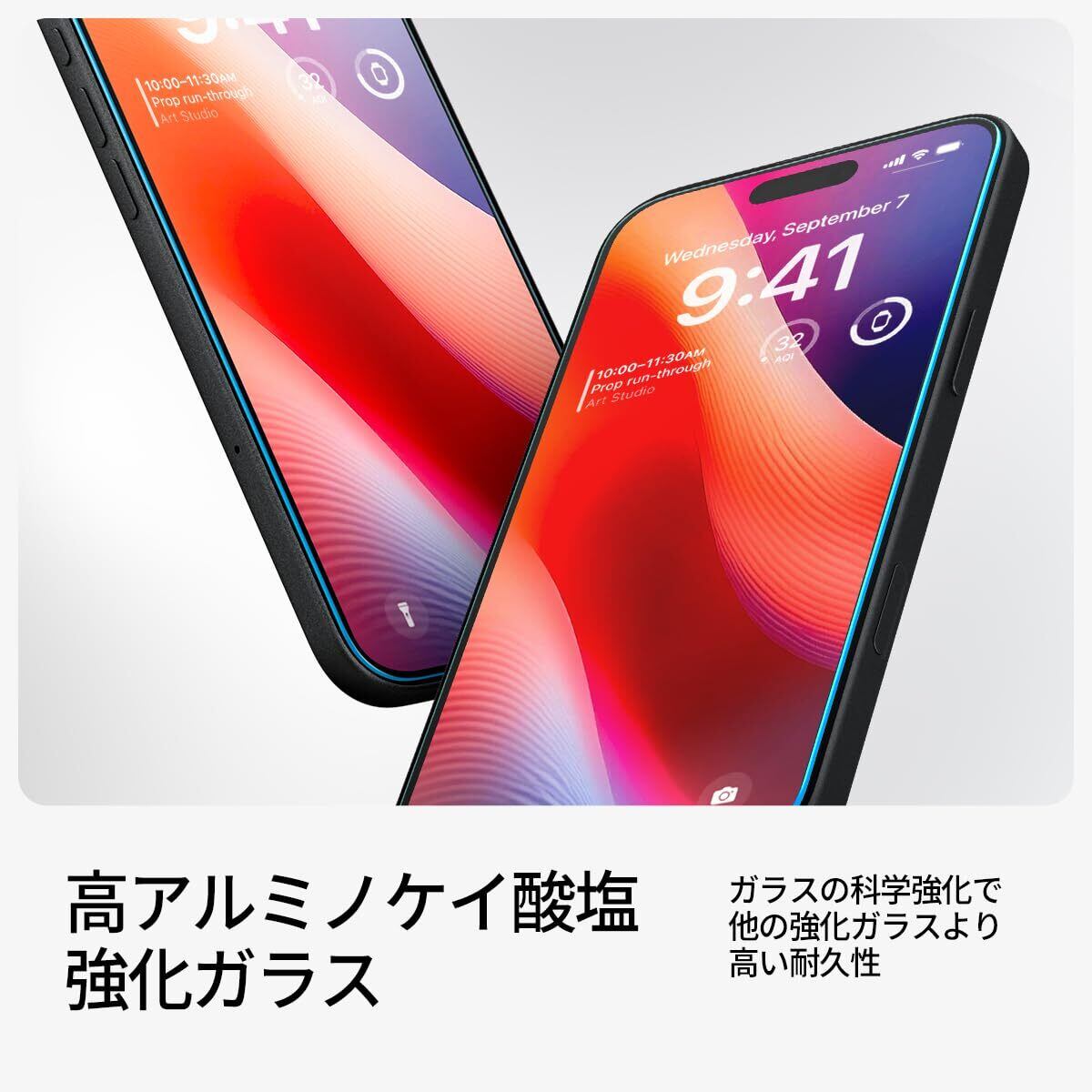 Spigen iPhone 16 ガラスフィルム iPhone 15 対応 9H硬度強化ガラス 貼り付けキット付き iPhone16、iPhone15 保護フィルム ナノコーティング 飛散防止 2枚入 EZ Fit AGL06903 | yankees