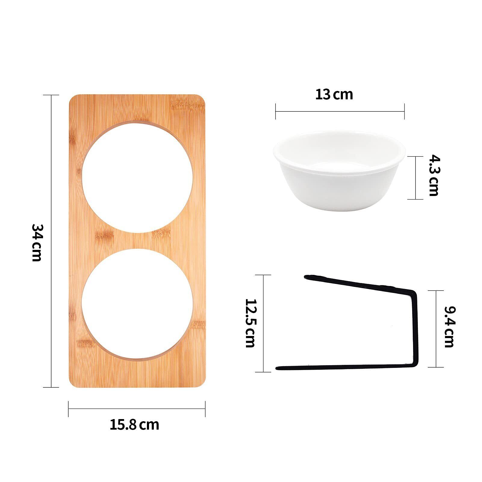 FUKUMARU 犬猫用スタンド付きセラミック食器、15度の角度つき、ペット用竹製スタンド付き食器、猫、犬、ペット、猫用、犬用、ペット用、食器、皿、陶器製、食器スタンド、餌入れ