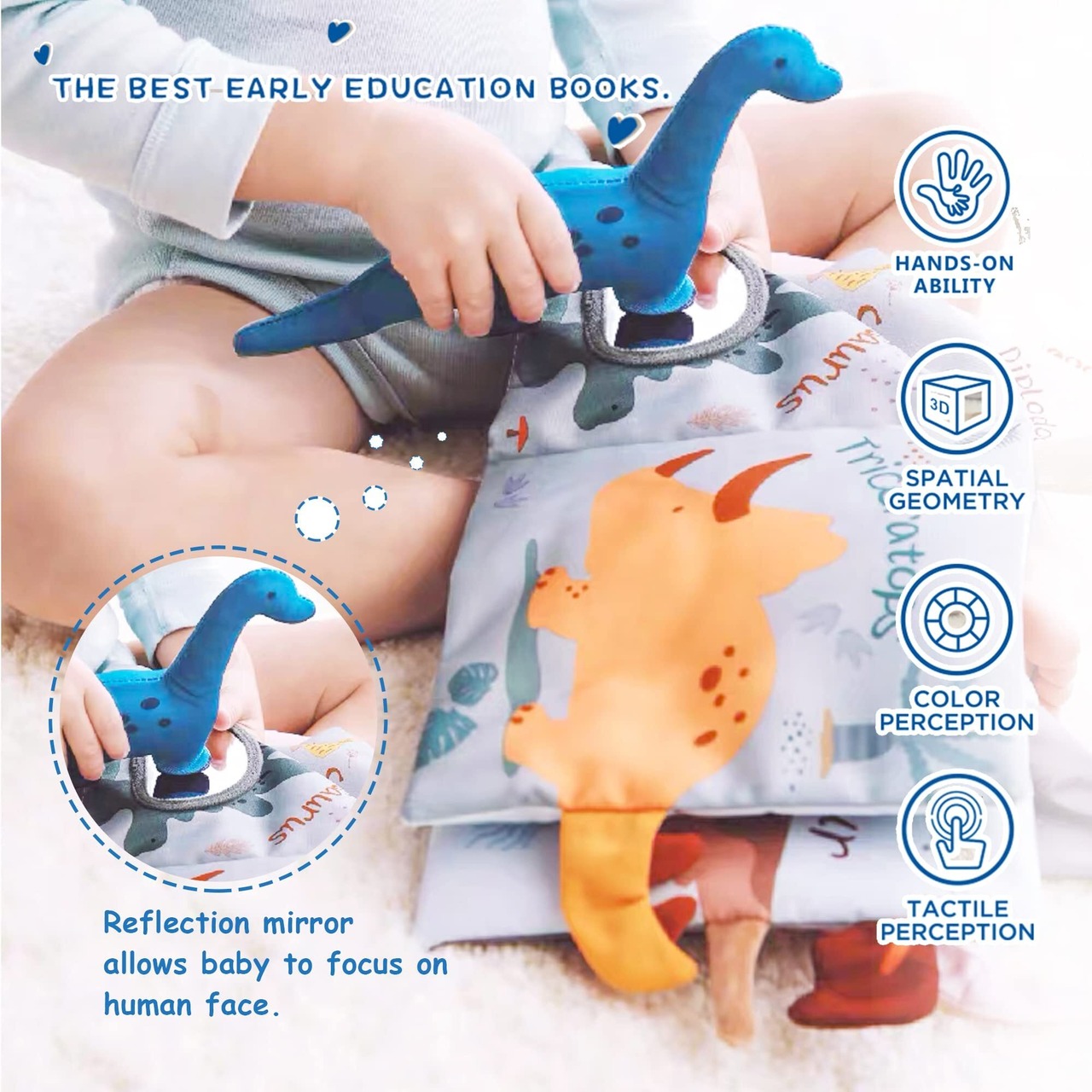 赤ちゃんソフトクロスブックお 出かけ布絵本:すべてのページには、感覚的な興奮と学習用の恐竜の名前があります。ディプロドクス、ステゴサウルス、トリケラトプス、スピノサウルス、プレシオサウルス、テロダクティルス、ティラノサウルスレックス。赤ちゃん おもちゃ,絵本の色やテーマに興味!布絵本,ベビーカー おもちゃ,両親は赤ちゃんの好みに応じて本を購入することができます。遊びながら英語も時間認識も学びます。