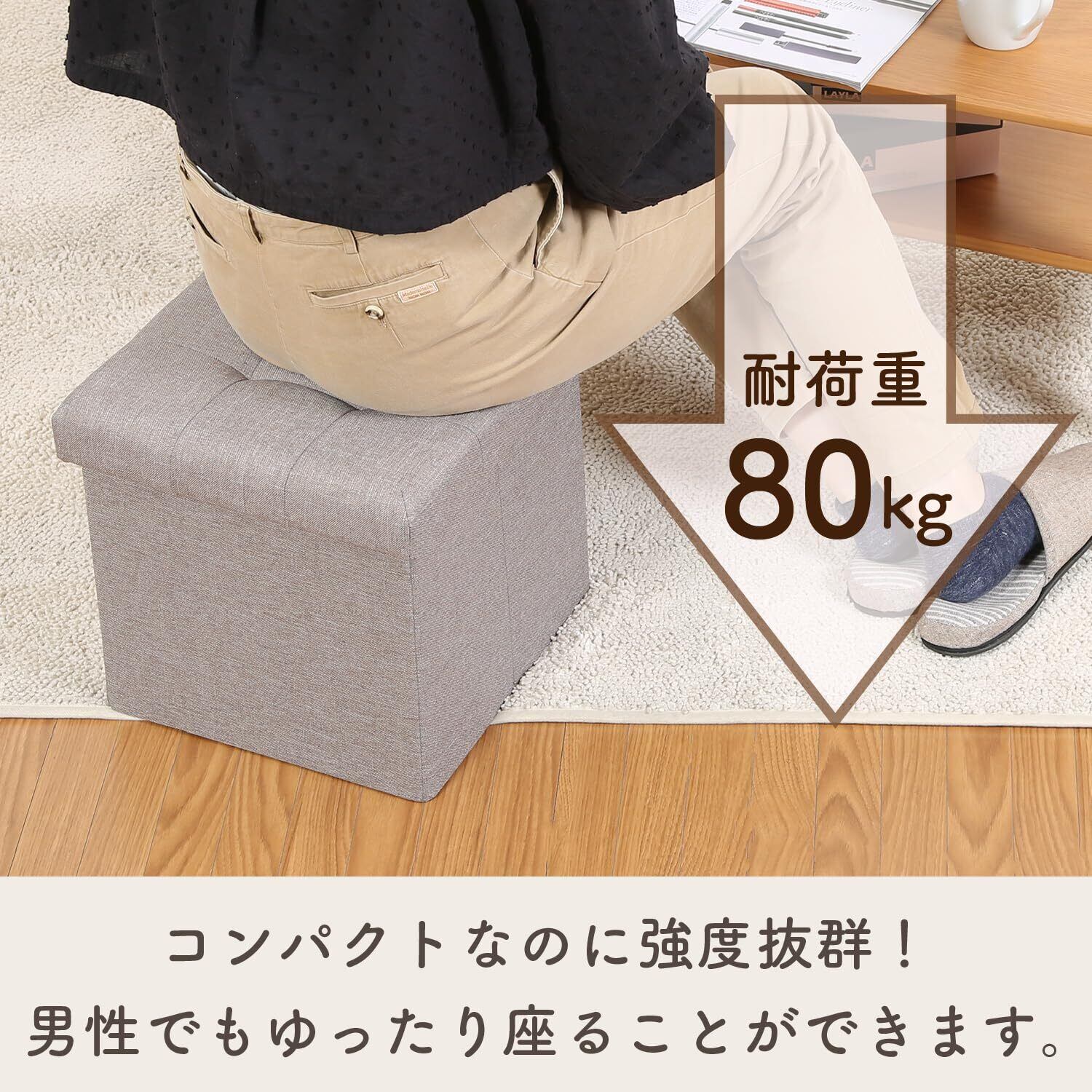 収納サイズは幅31cm×奥行31cm×高さ30.5cmと、コンパクトながらも大容量。耐荷重は80kgと十分な強度を持ち、重い物もしっかり収納できます。散らかりがちなリビングや子供部屋の収納に最適です。折りたたみ可能なので、不使用時には場所を取りません。