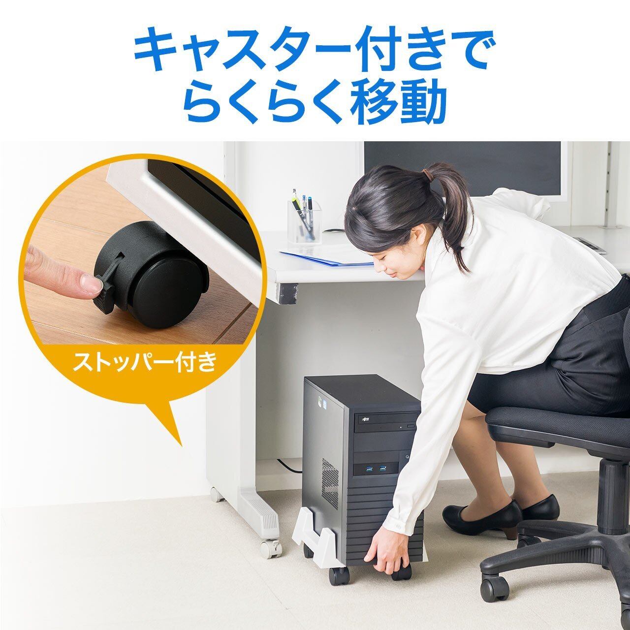 「サンワダイレクト PCスタンド」をぜひご覧ください!この商品は、デスクトップ環境を整えるための理想的なキャスタースタンドで、効率的かつスタイリッシュなオフィスやワークスペースに最適です。