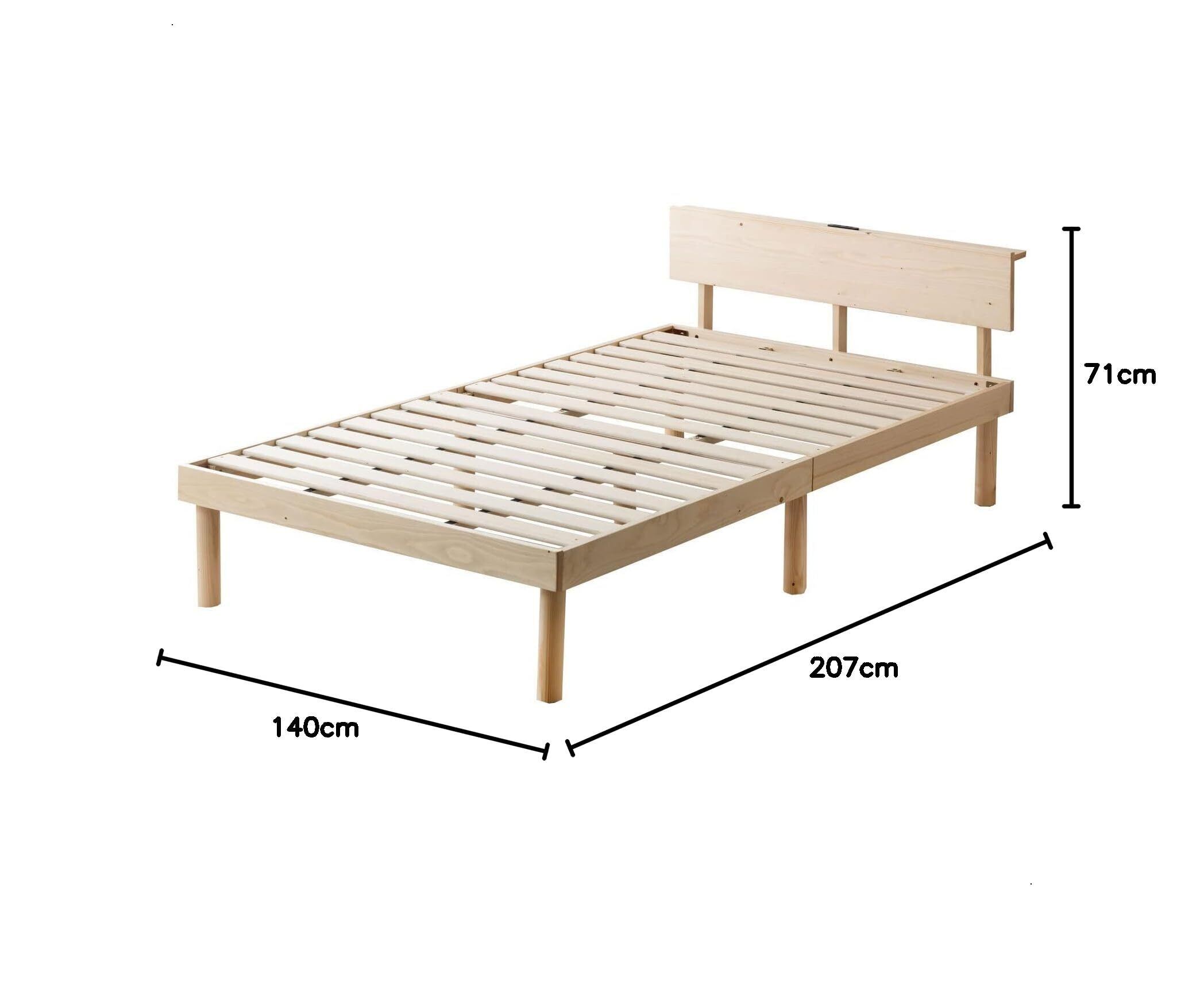 【組立品(約20分)】ベッドフレームのみの販売です。※コンセントは合計1500Wまで使用できます。※破損の原因となりますので、直接すのこの上に乗るのはおやめください。※2022年7月25日にすのこ本数が16本→14本に仕様変更となりました。耐荷重は変わりませんので安心してご使用ください。