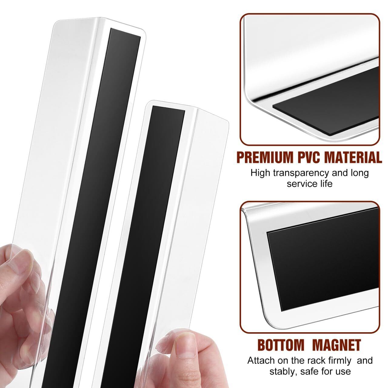【仕切り板のサイズ】20×6×3cm。色:透明。材質:PVC、ゴム磁気ストリップ。パッケージ:10×棚仕切り板。
